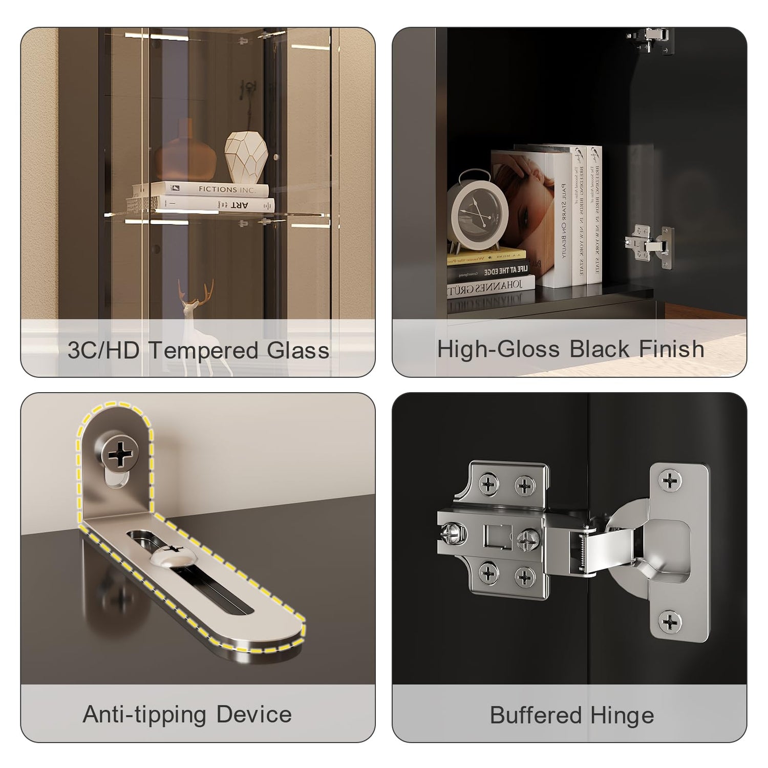 - 【5mm 3C/HD Tempered Glass】This black display cabinet features 3C high-definition tempered glass, offering a clear view to fully showcases beauty of your collectibles. It is more scratch-resistant, fingerprint-resistant and durable than ordinary glass, ensuring long-lasting clarity without warping or cracking