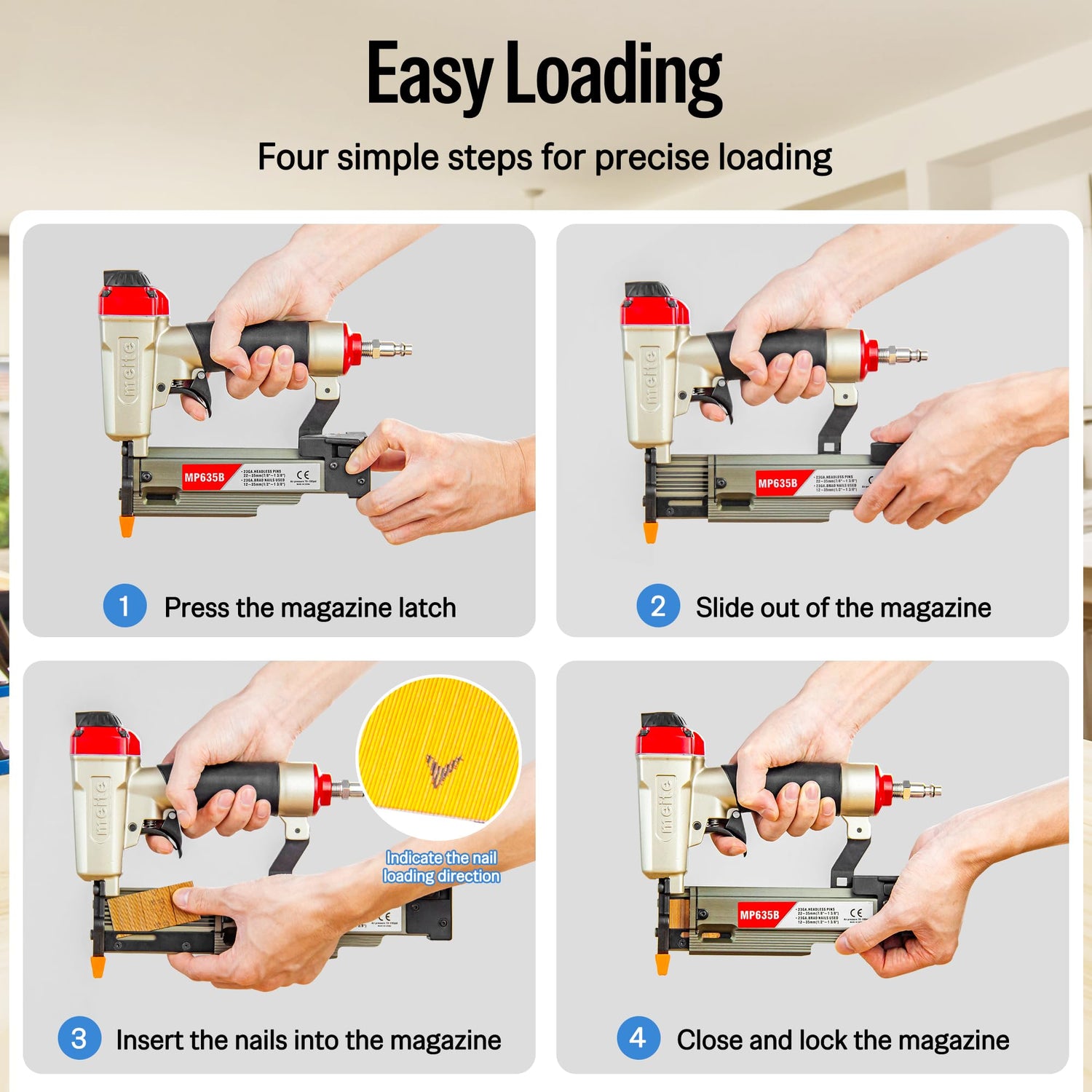 meite MP635B Pin Nailer, Pneumatic 23 Gauge Pin Nailer, Air Micro Pin Nail Gun, Fits 1/2" to 1-3/8" 23 Gauge Pin Nails, Ideal for Paneling, Small Trim, Fine Molding, and Craft Work