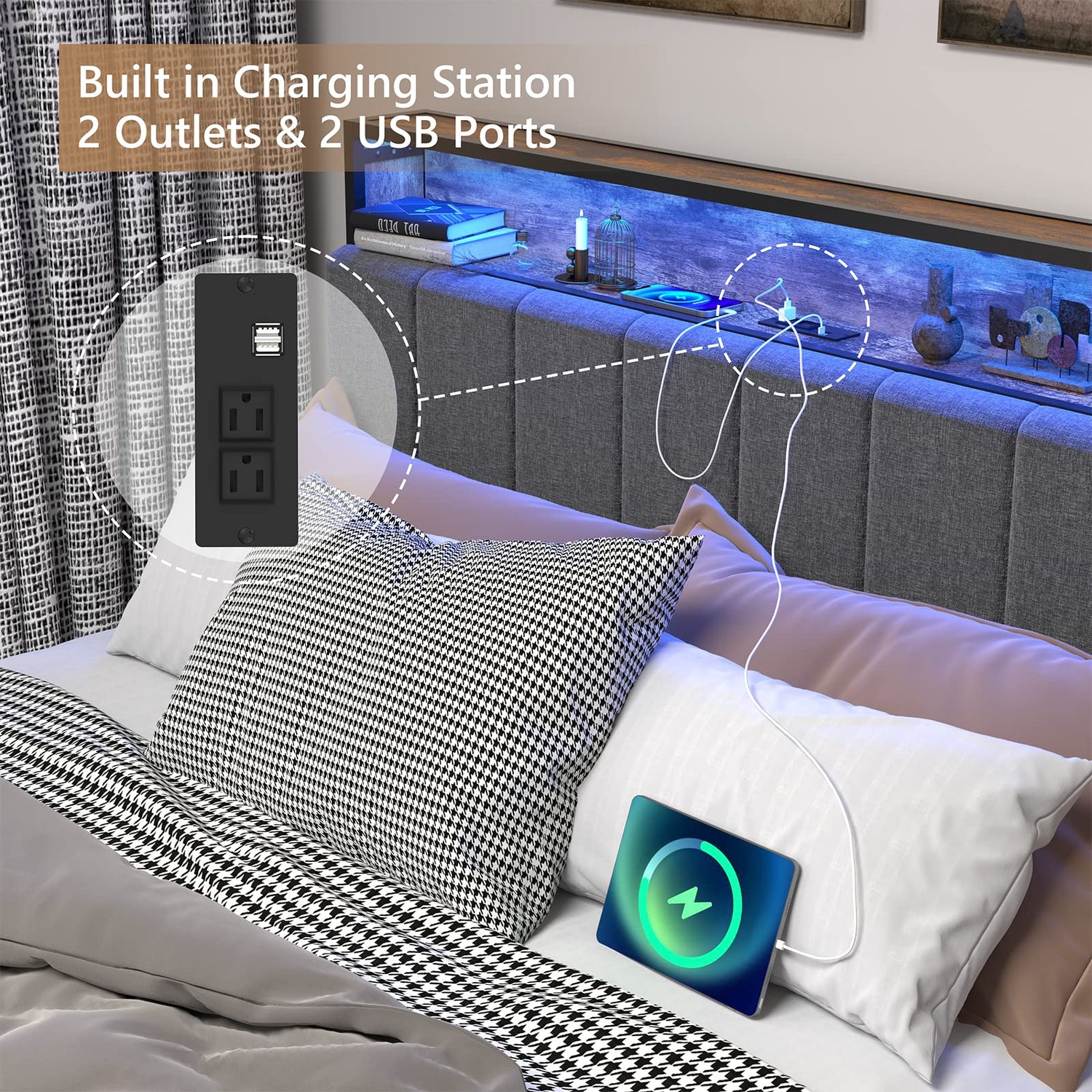 - LED BED FRAME WITH SOCKET: The Headboard Lamp Has 16 Colors, 6 Brightness Adjustments and 4 Lighting Modes. The Socket Has 2 Standard Plug Sockets and 2 USB Ports. Press The Remote Control to Enjoy Colorful Moments Easily