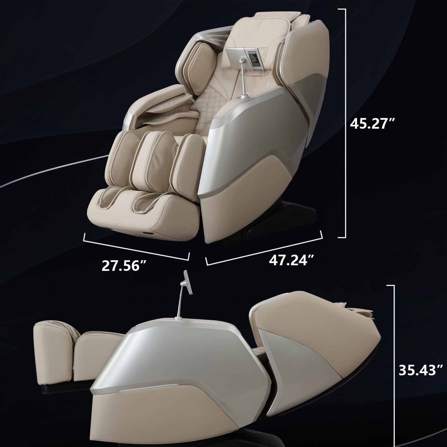 MeitFith 4D+2D Dual Mechanism Massage Chair Full Body, Zero Gravity Shiatsu SL Track Massage Chair with Heat, Calf Rollers, Bluetooth Speakers, AI Voice Control & Smart Body Scan, Beige