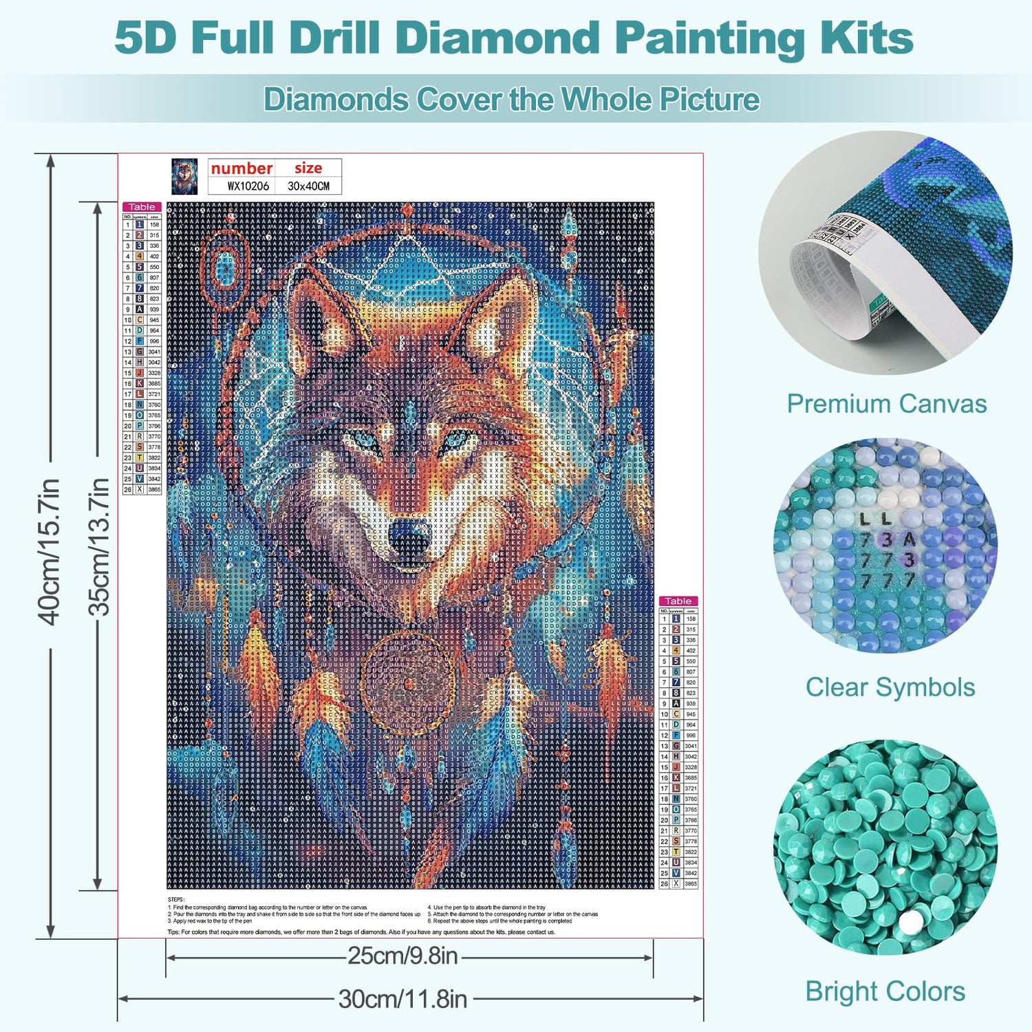 MEIYUDA Diamond Painting Kits for Adults, 3D Wolf Diamond Art Kits for Beginners, DIY Dream Catcher Diamond Art Painting Kit Gem Art Crystal for Home Wall Decor and Holiday Presents 12x16Inch
