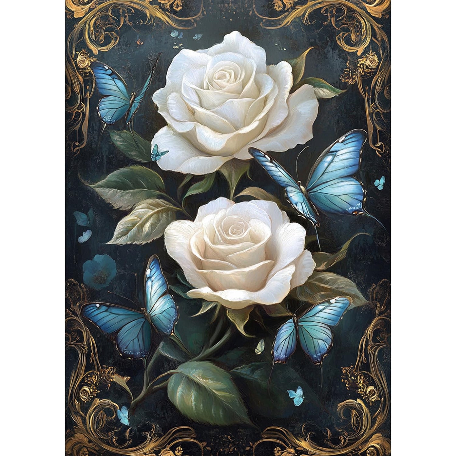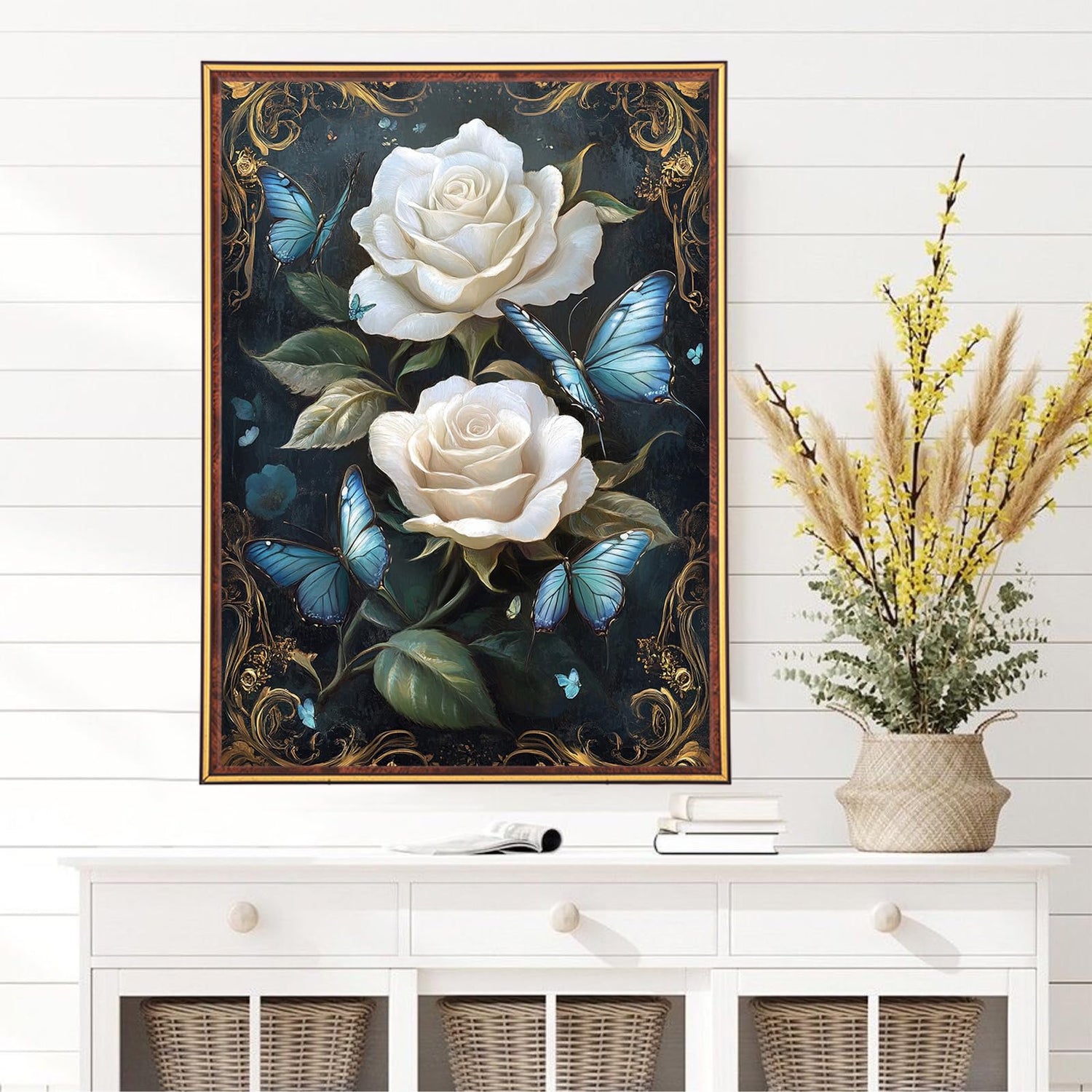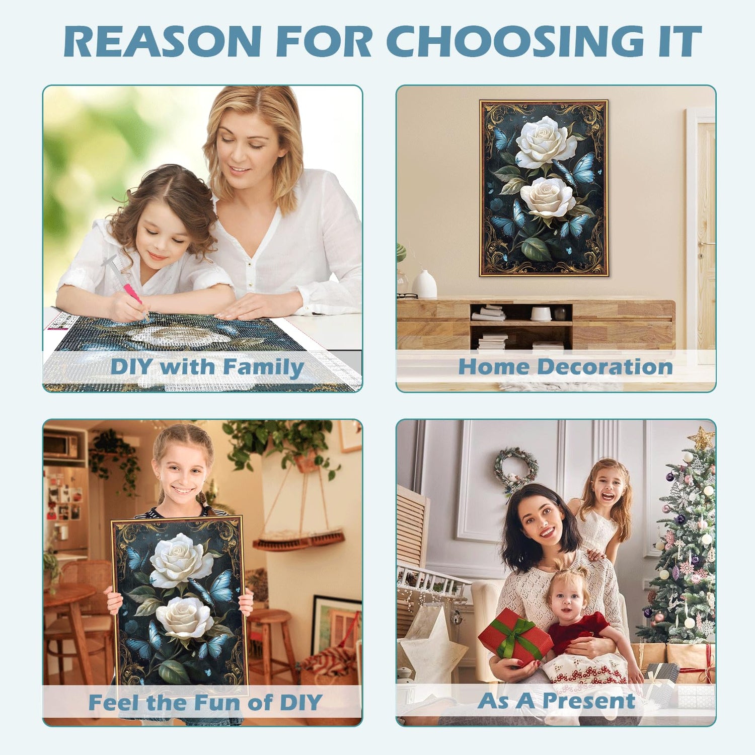 MEIYUDA Flowers Diamond Painting Kits for Adults, Butterfly Rose Diamond Art Kits for Adults Beginners, DIY Full Diamond Art Painting Kit for Present Home Wall Decor 12x16 Inch