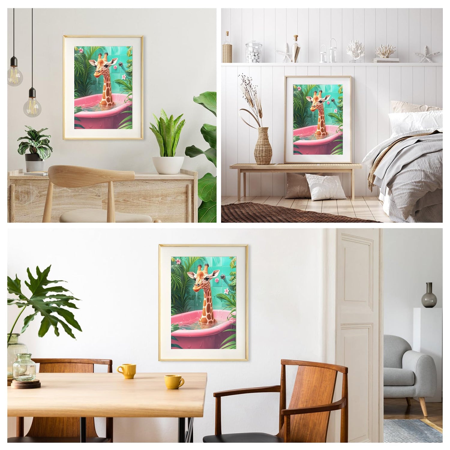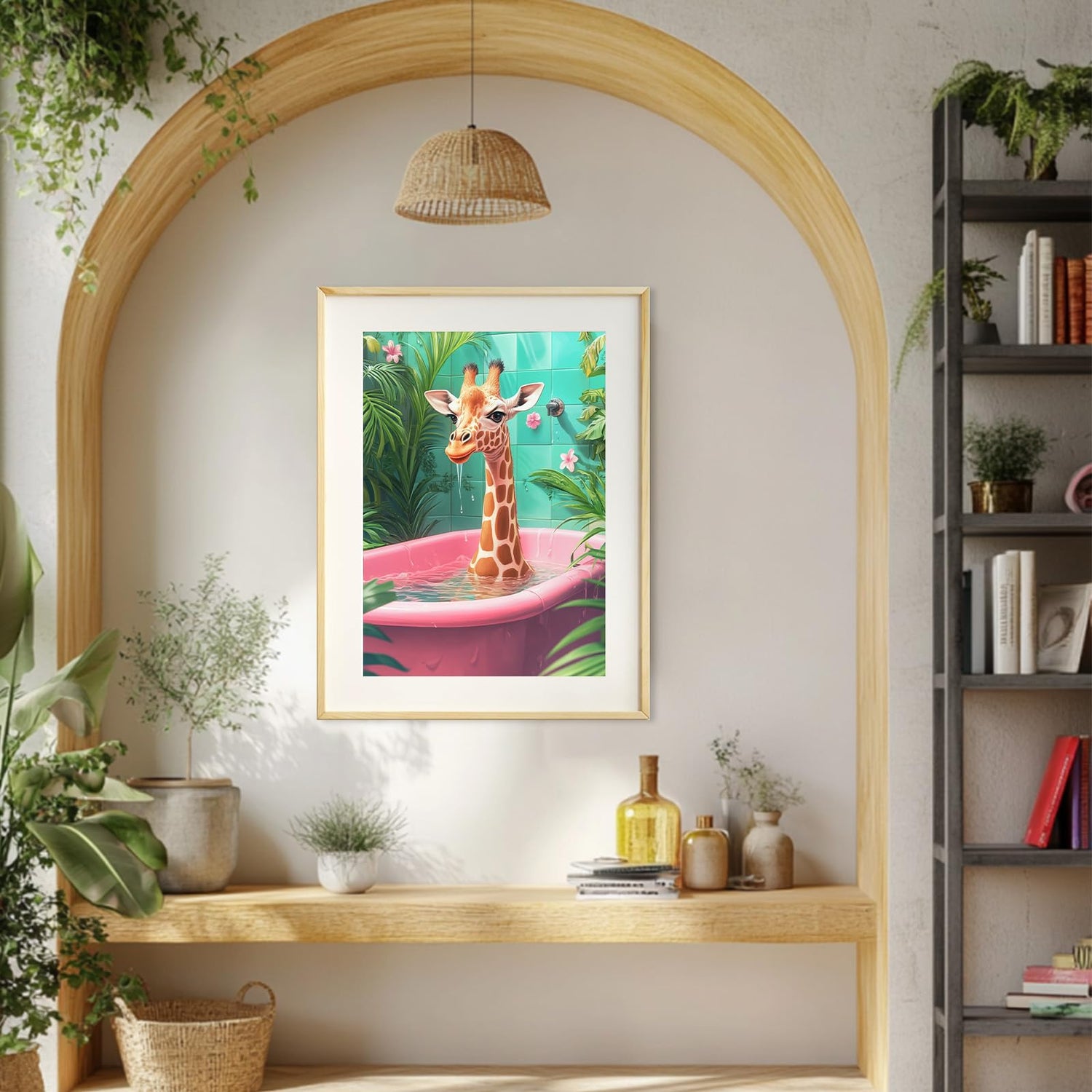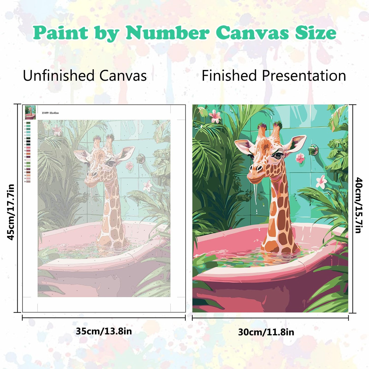 MEIYUDA Giraffe Paint by Numbers Kit, Giraffe in Bathtub Paint by Numbers for Adults Beginners, DIY Funny Animals Acrylic Oil Painting by Number on Canvas for Gift Home Wall Decor 12x16in