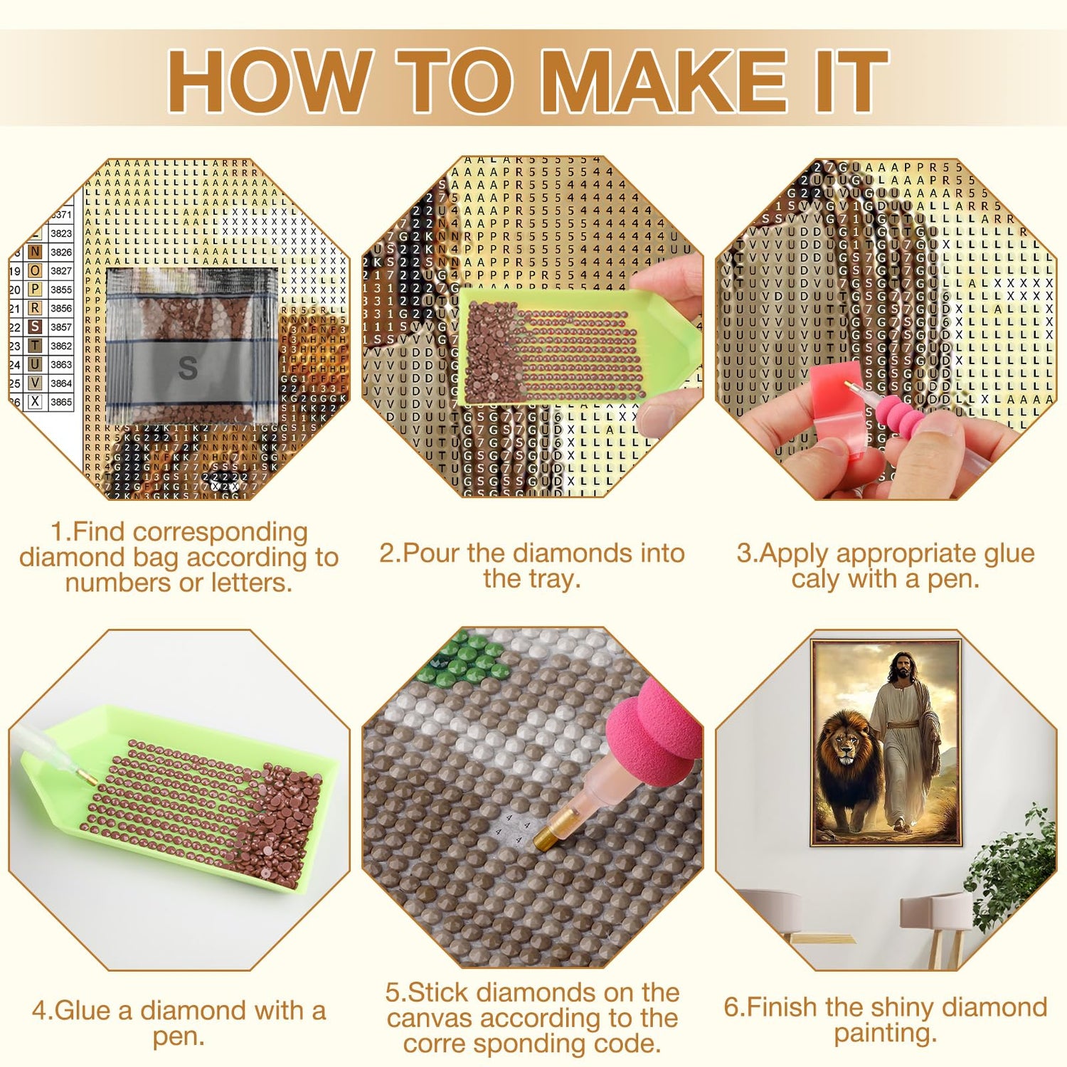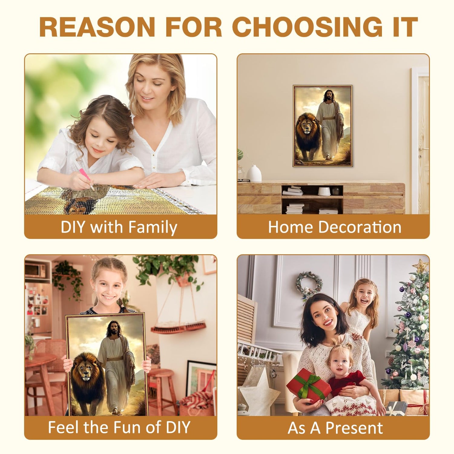 MEIYUDA Jesus Diamond Painting Kits for Adults, DIY Lion Diamond Art Kits for Adult Beginners, Full Diamond Art Painting Kit for Home Wall Decor Gifts 12x16inch