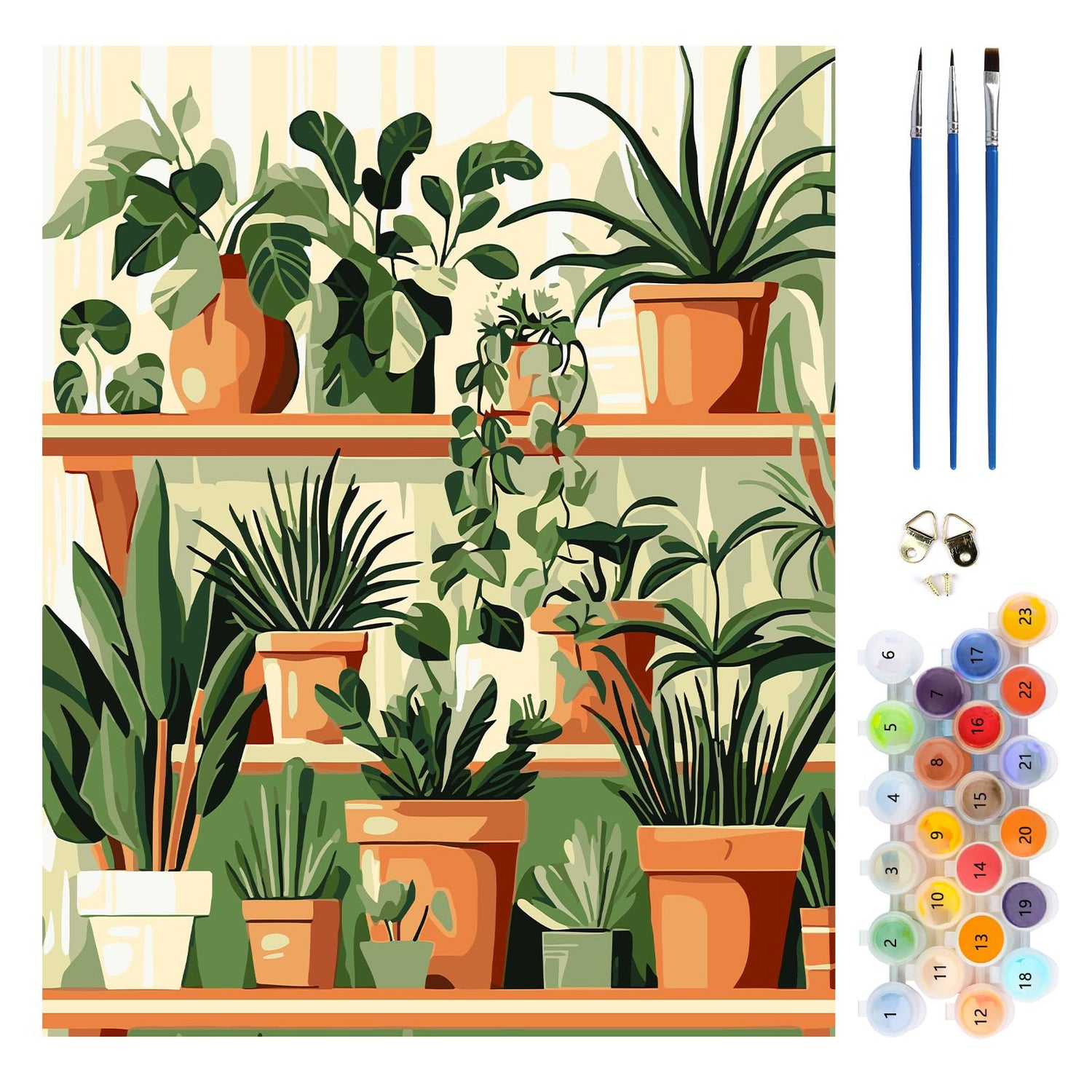 MEIYUDA Paint by Numbers Kit, Green Planes Paint by Numbers for Adults Beginners, DIY Potting Plants Acrylic Oil Painting by Number on Canvas for Gift Home Wall Decor 16x20in