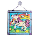 - DISPLAY ANYWHERE: Our crafts for children create a beautiful display in any location. The brilliance of these "stained glass" art projects is enhanced when they are hung in a sunny window so the unicorn can shimmer and glow.