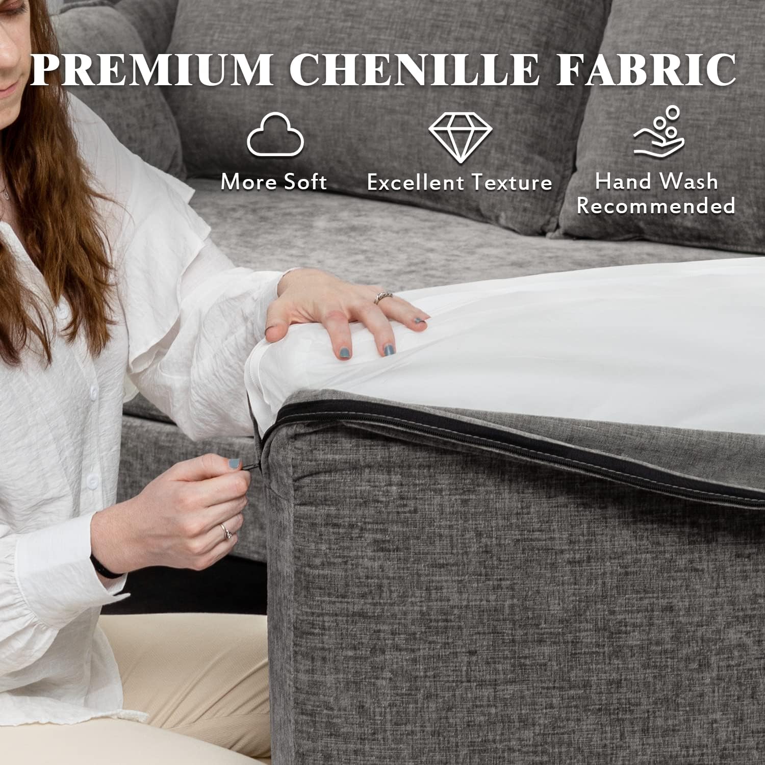 - 💟【COMFY CLOUD COUCH】Covered with chenille fabric, this cloud couch sectional is more soft and skin-friendly. The high quality chenille fabric not only adds a delicate touch, but also provides extraordinary comfort. The cushion of the sectional sofa uses a combination of memory foam sponge and high-density sponge to provide comfort and support. Whether you're sitting down or lying down, the modular couch will provide you with an unbelievably comfortable experience.