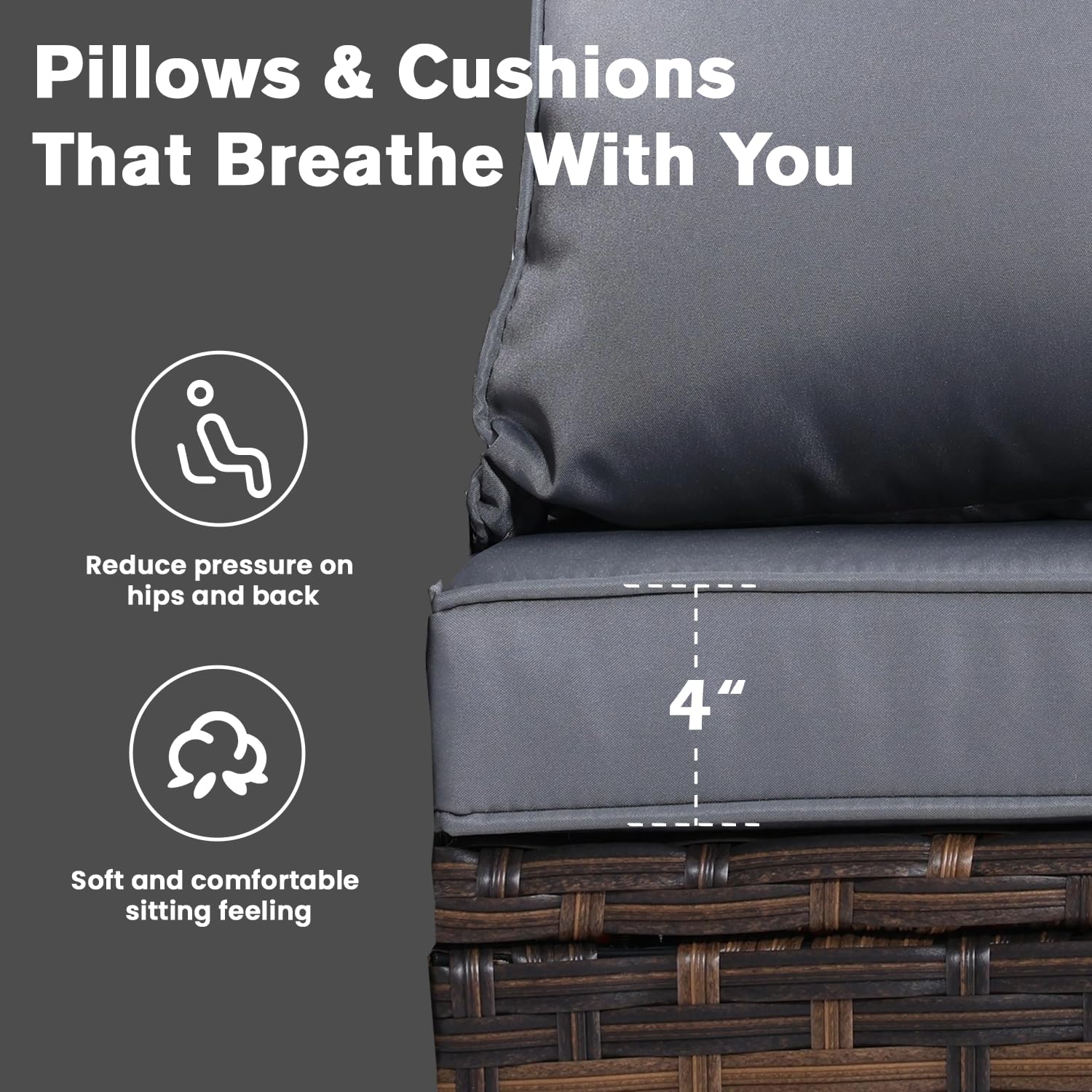 - Comfortable Thick Cushions: The 4-inch thick cushions are made of high-resilience foam, providing ultimate comfort and fatigue reduction. Waterproof, stain-resistant cushion covers with a convenient zipper make cleaning easy