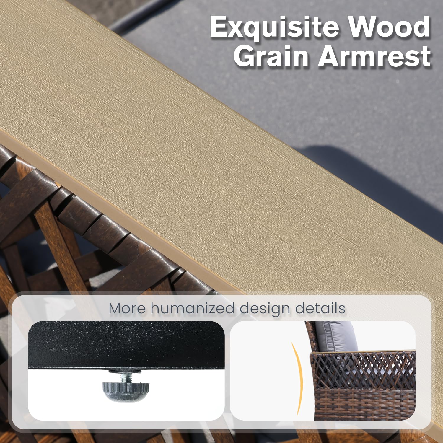 - Unique and Stylish Design: Featuring a semi-hollow side frame for a modern, airy look and added stability, the wooden armrests offer a natural feel with a smooth, high-quality finish. The gradient rattan weaving provides a beautiful color transition that combines style and long-lasting durability
