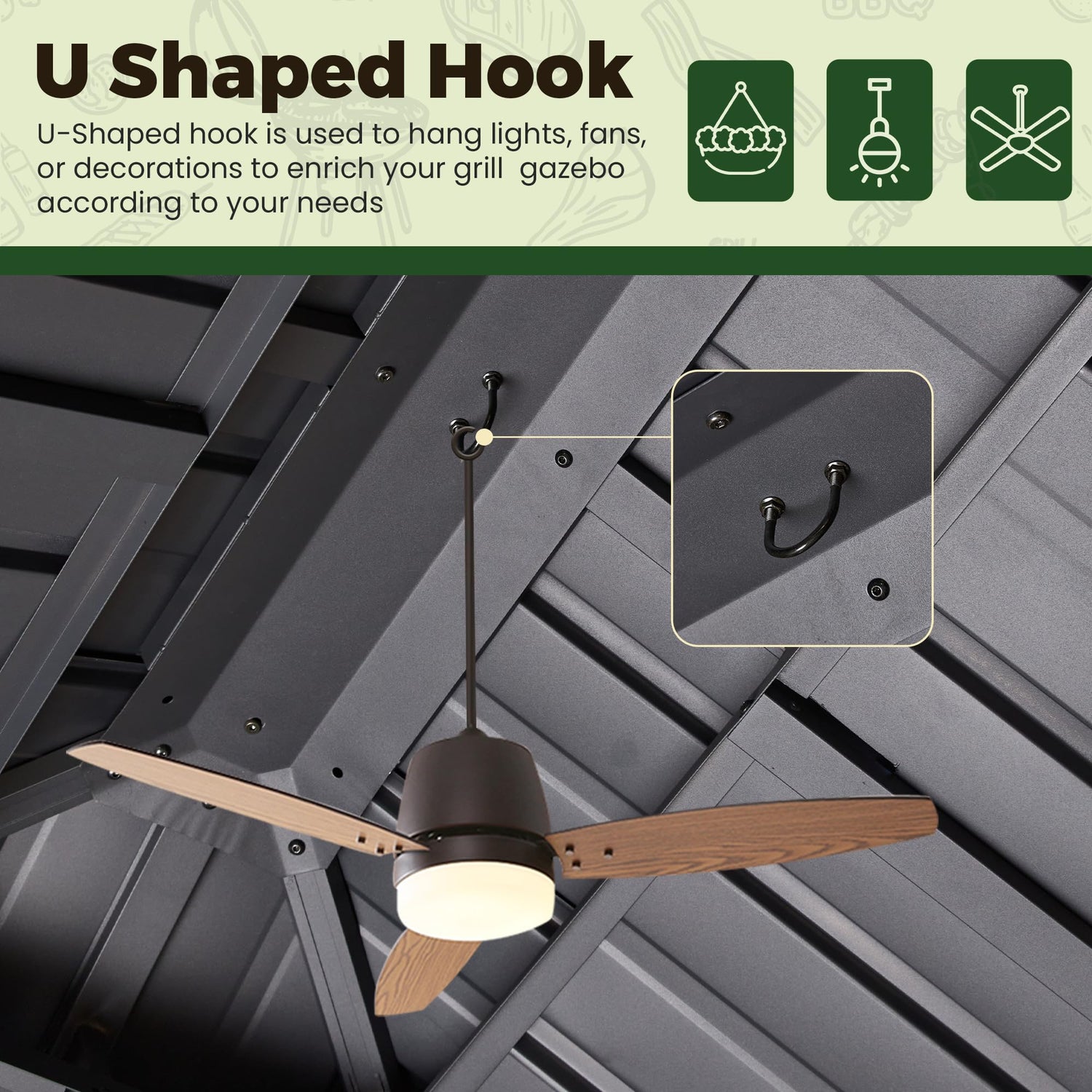 - Ceiling Hook: Equipped with a ceiling hook, allowing you to hang light fixtures to increase lighting, or hang fans for better ventilation and heat dissipation during barbecues, or hang decorations to personalize your space