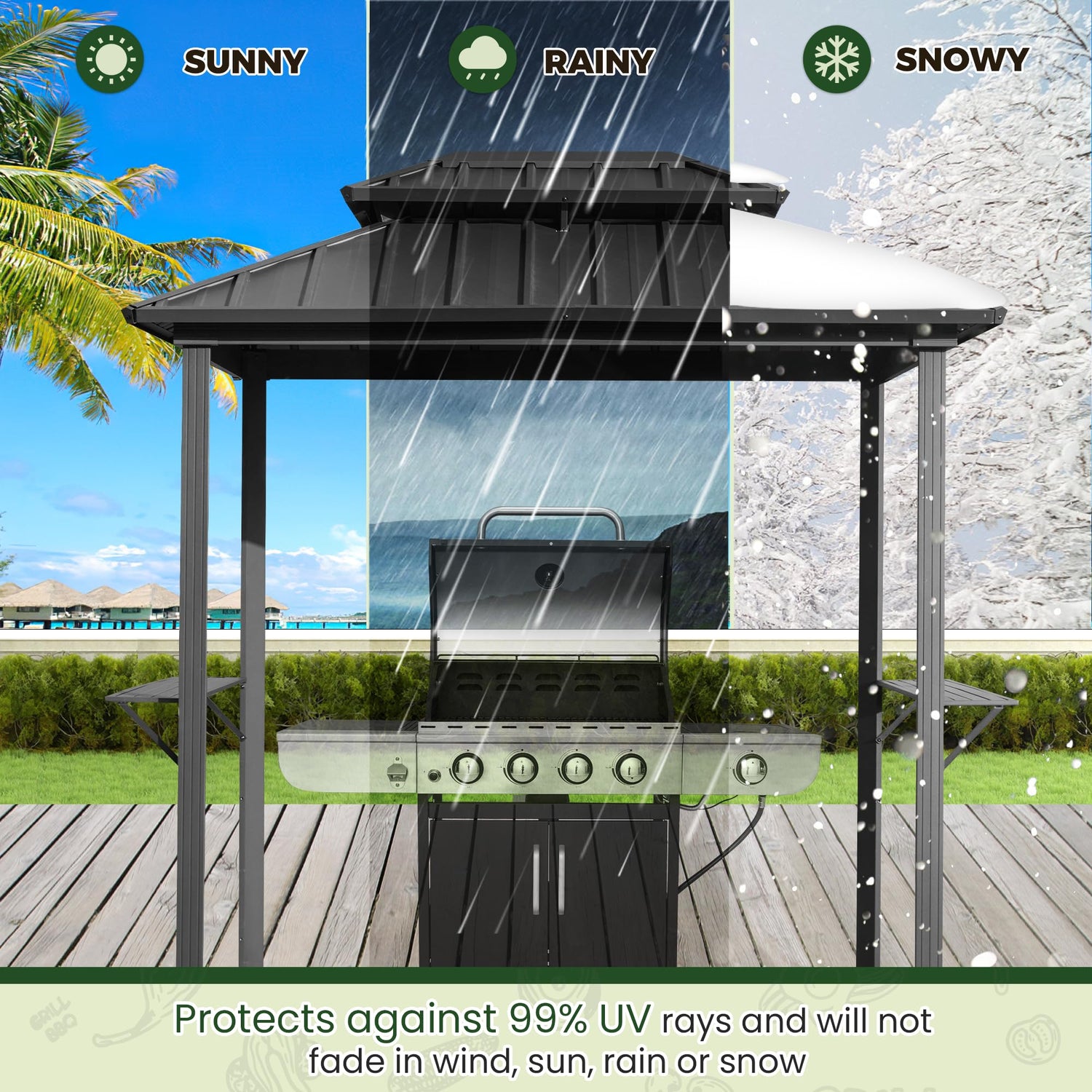 MELLCOM 8' x 6' Grill Gazebo, Outdoor Patio Gazebo with Galvanized Steel Double Roof, Hardtop Barbecue Gazebo with 2 Side Shelves and Ceiling Hook for Deck Lawn Backyard Garden (Black)