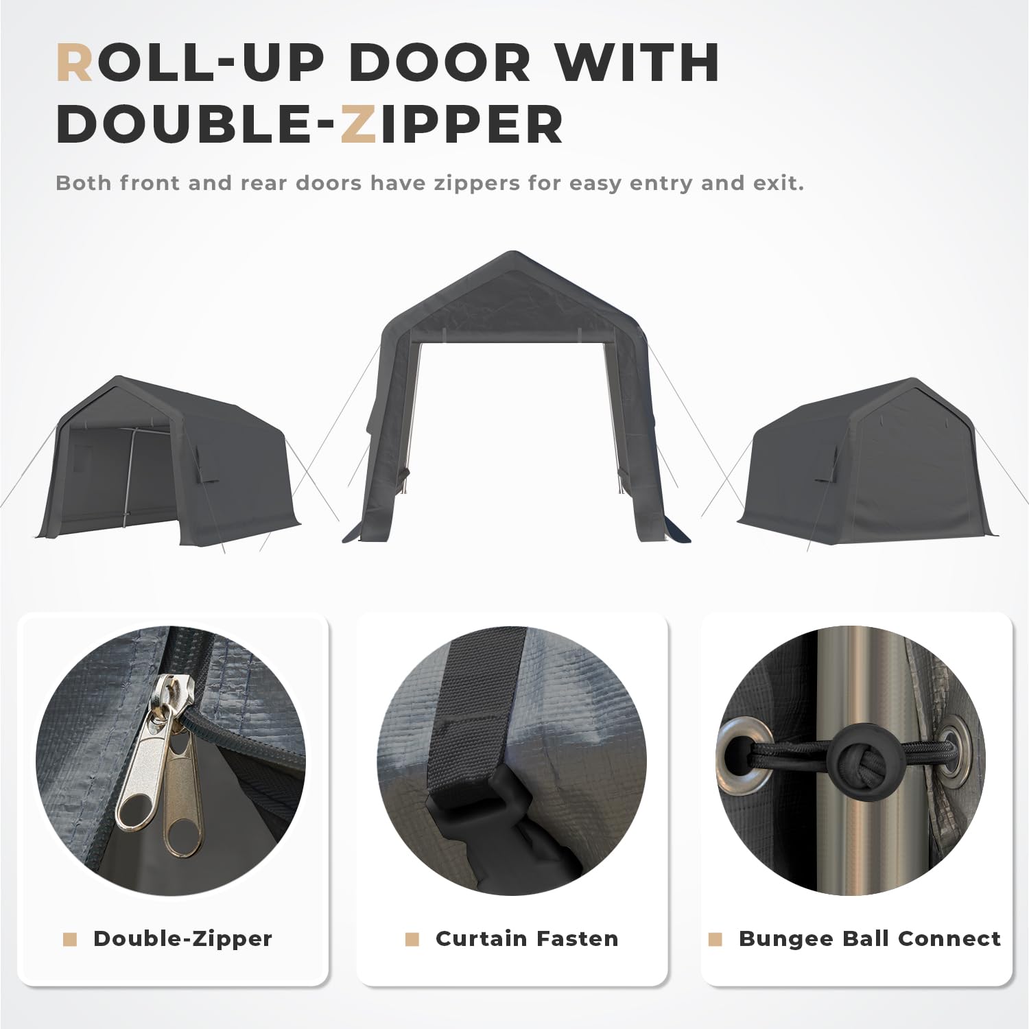 - ✅【Double-Zipper Doors & Vents】: The carport adopts Double-Zipper Door design, Three usage ways to meet all your needs, all rolled up, making you no longer need to worry about not being tall enough.Each side panel is equipped with a vents design. Vents help with airflow and prevent condensation caused by temperature differences or rainwater.