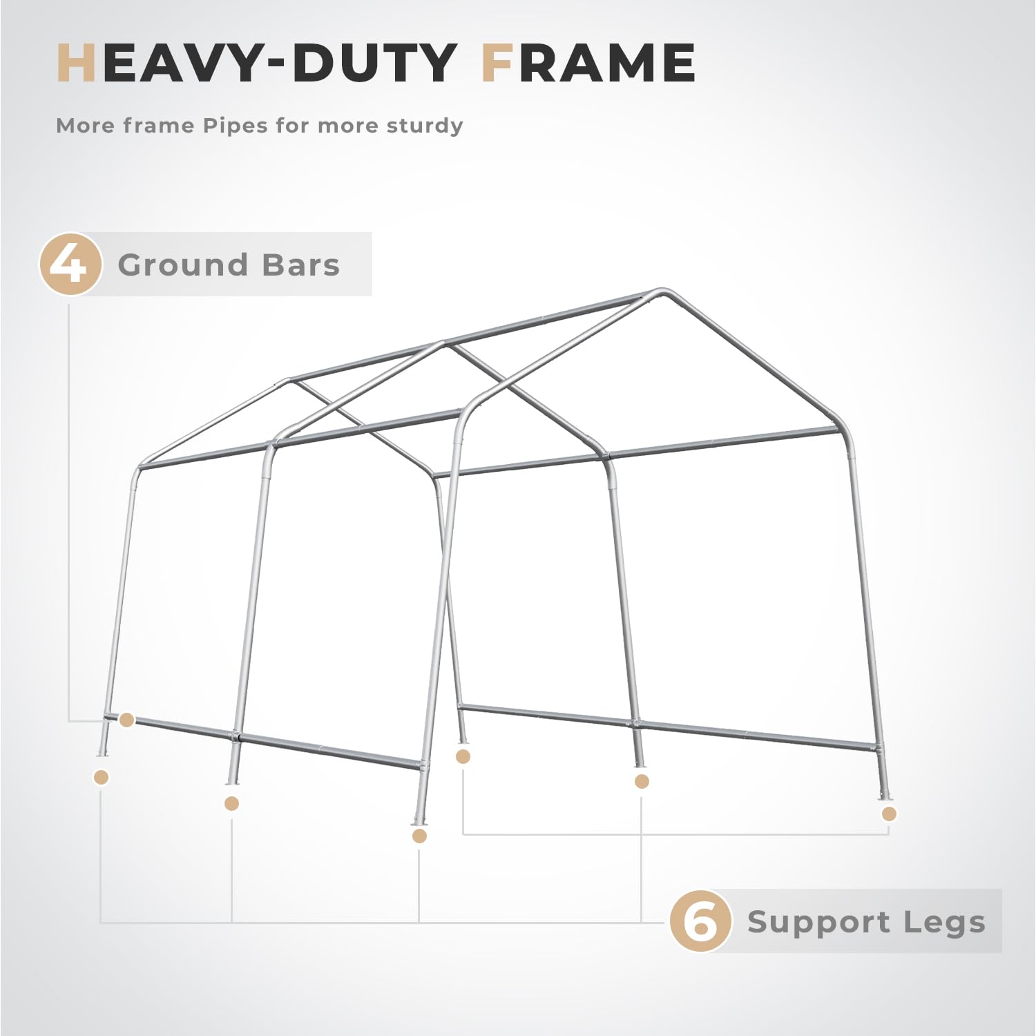 - ✅【6 Reinforced Ground Bars】: 3 top beams & 6 ground bars are added to improve the stability of the garage.