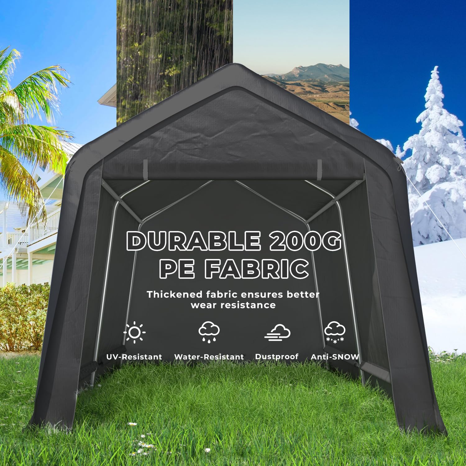 - ✅【Peak Style Roof & Anti-Snow】: The top is designed with a Peak Style shape, which avoids standing water and snow and increases the service life of the car garage.