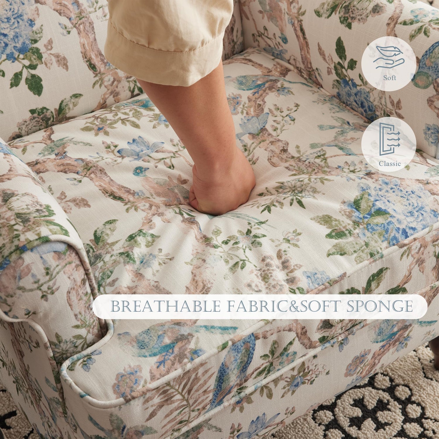 - CLASSIC WING BACK CHAIR DESIGN: The seat cushion and backrest of the modern accent living room chair are made of high-density sponge, increasing comfort. Printed fabrics are not prone to pilling and wear, and can quickly absorb your sweat, keeping you cool and fresh even in hot summers