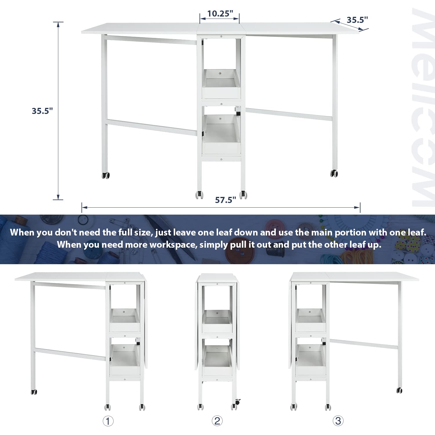 MELLCOM Home Hobby Craft Table with Storage Shelves, Mobile Folding Cutting Table for Large Fabric, Foldable Table for Home Office Sewing Room Craft Room, Fixed Height 35.5in