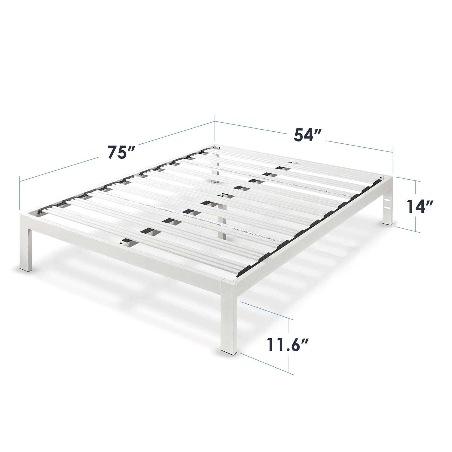 Mellow Rocky Base C 14" Platform Bed Heavy Duty Steel White, w/ Patented Wide Steel Slats (No Box Spring Needed) - Full