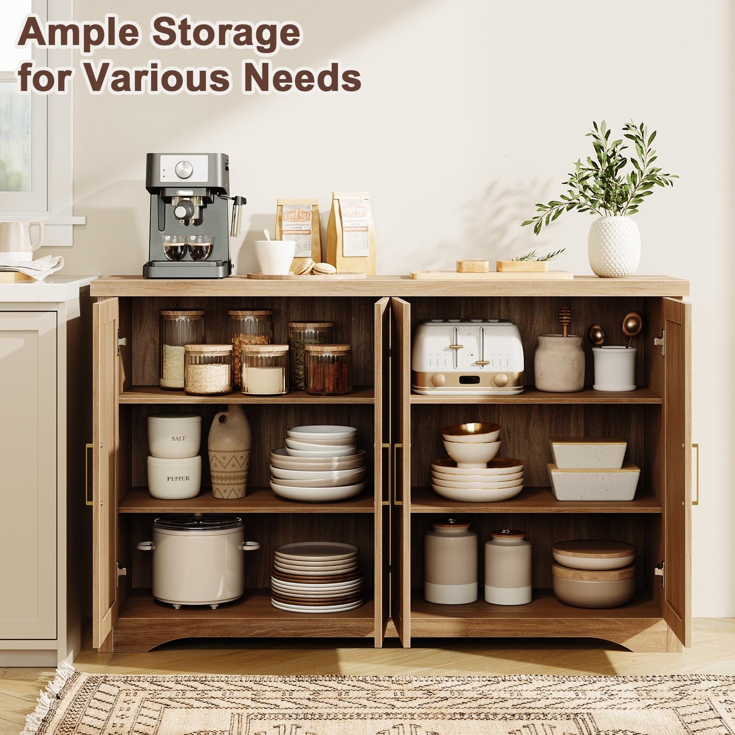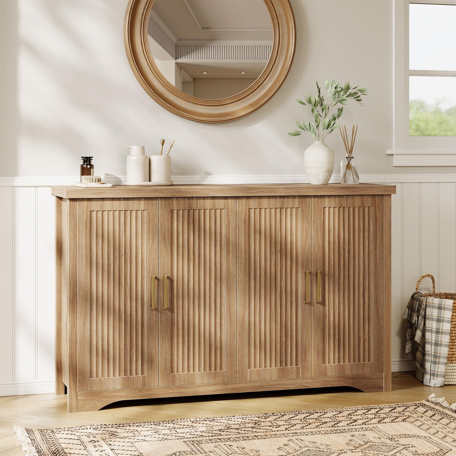 Memobarco Fluted Buffet Cabinet with Storage Accent Sideboard,Modern Credenza with 4 Doors & Adjustable Shelves,Wood Coffee Bar Table Console for Dining Room Kitchen Living Room Entryway,Natural Oak