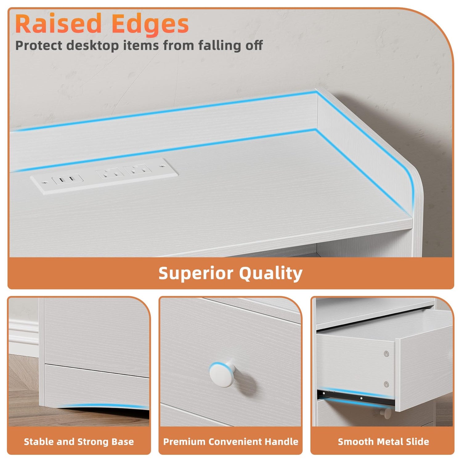 - 【Safety Comes First】Our white nightstand for adult use is CARB P2 certified; For safety: 1. NEVER allow children to stand, climb, or hang on drawers, doors, or shelves; 2. Do not defeat or remove the drawer interlock system; 3. Place the heaviest items in the lowest drawers; 4. NEVER put a TV on this bedroom furniture