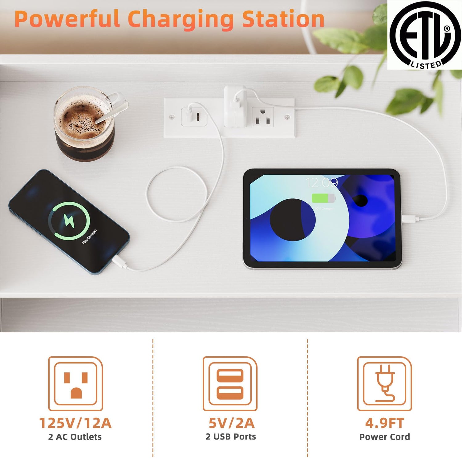 - 【NightStand with Charging Station】Memobarco Nightstand with 2 USB ports and 2 AC outlets,the bedside table can easily charge your phone or iPad.The built-in outlet is upgraded with a more user-friendly layout to avoid cable mess.Moreover,ETL certified charging station for safety.