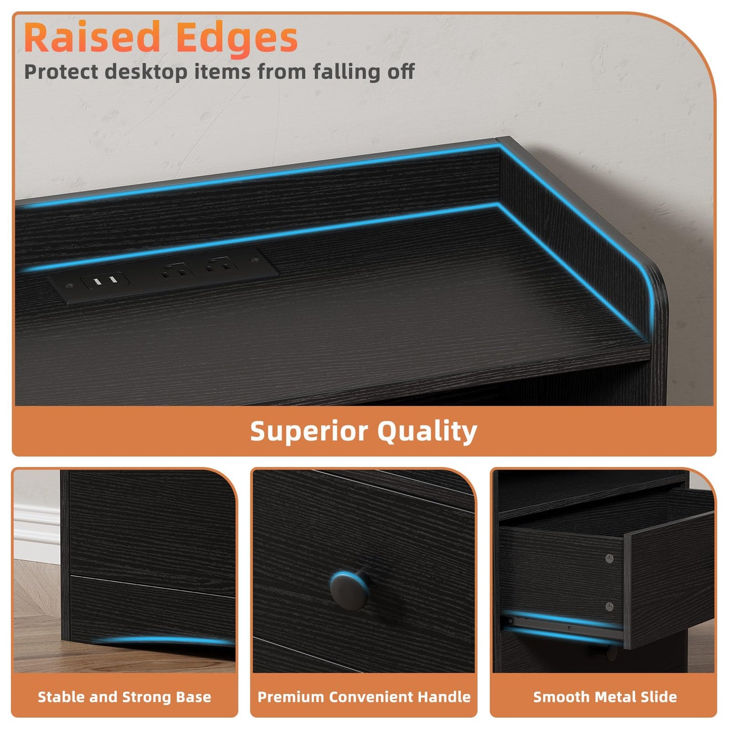 - 【Safety Comes First】Our black nightstand for adult use is CARB P2 certified; For safety: 1. NEVER allow children to stand, climb, or hang on drawers, doors, or shelves; 2. Do not defeat or remove the drawer interlock system; 3. Place the heaviest items in the lowest drawers; 4. NEVER put a TV on this bedroom furniture