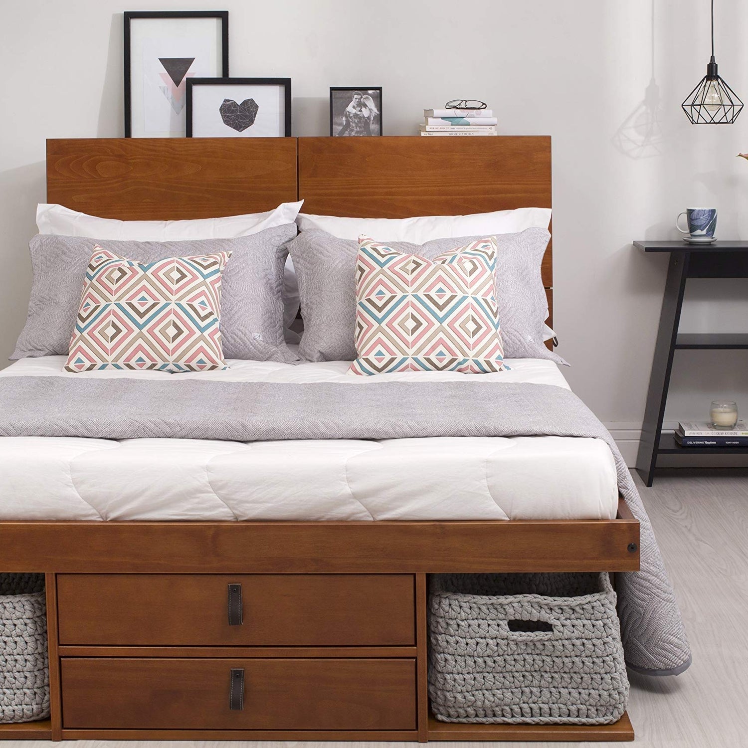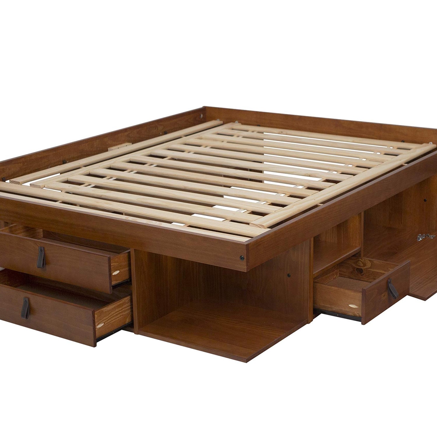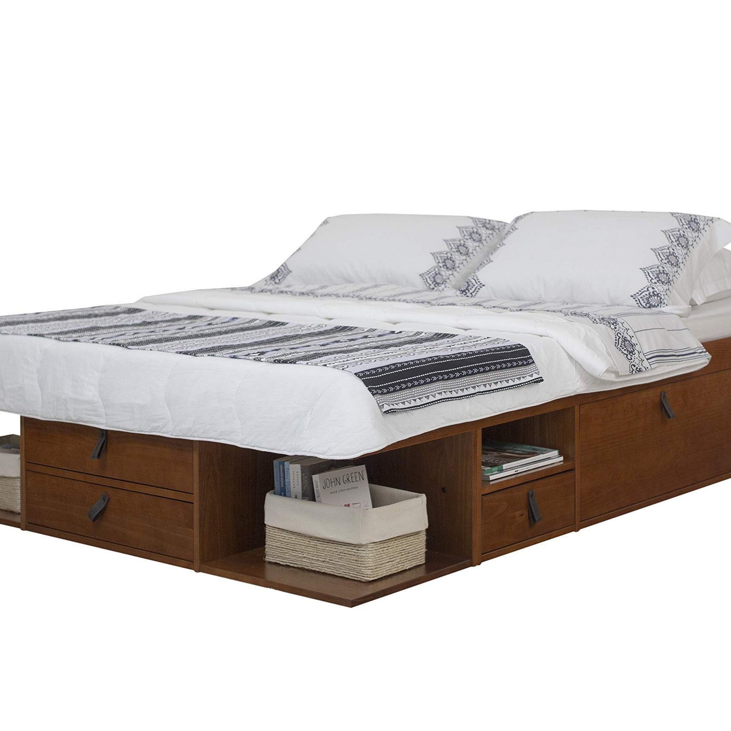 Bali Storage Platform Bed with Drawers - Queen Size in Caramel Brown Wood