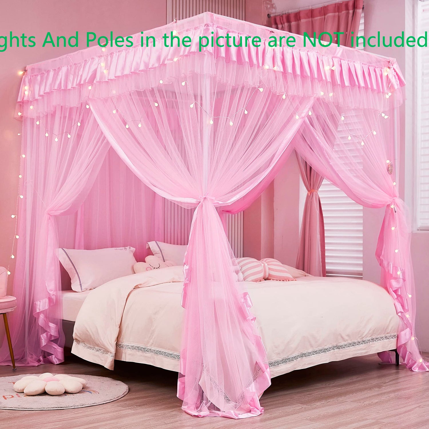- Canopy size:57"Wx78.5"Lx78"H/(Suggested for Full),Lights and Poles in the picture are NOT included.