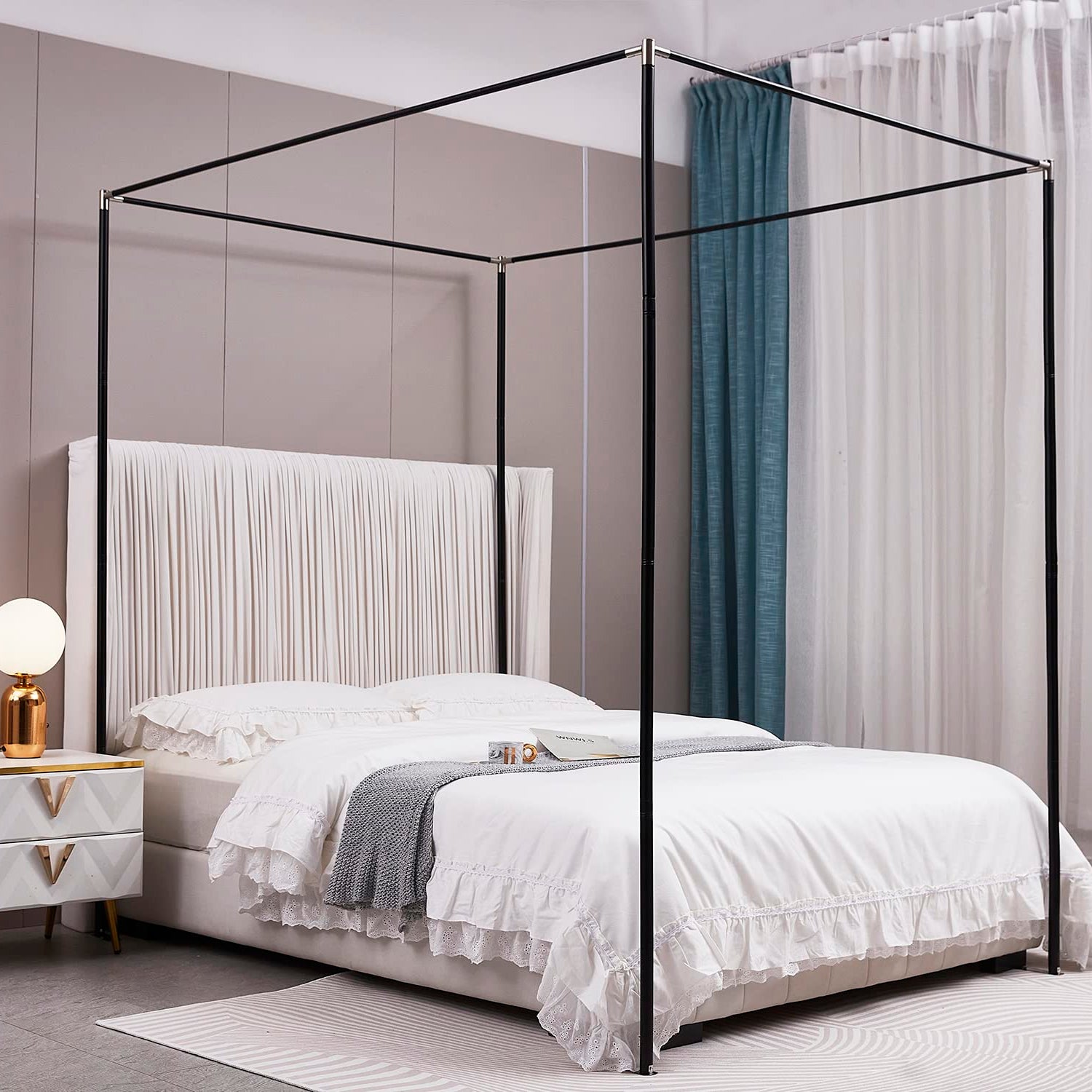 Mengersi Canopy Bed Frame King Size,Bed Canopy Frame Post Bed Poles,Canopy Bed Curtains Frame Bed Bracket Fit for Metal Bed Wood Bed Bedroom Decor,Black
