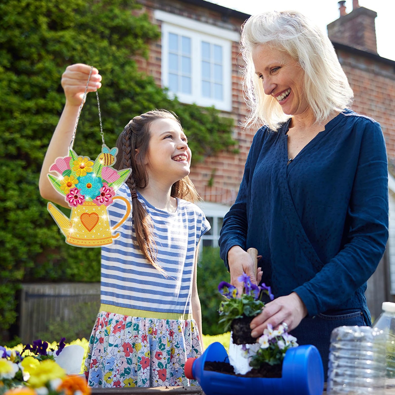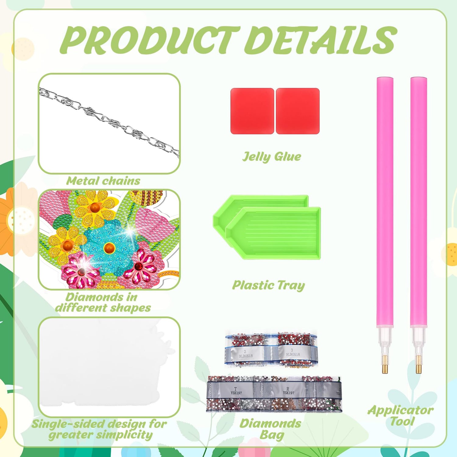 - Content Description: our diamond painting kit includes 3 styles of flower trucks, shower head, and gnomes holding tulips; It comes complete with the necessary tools, an ample supply of diamonds, and hanging chains for your convenience and to cater to your DIY requirements