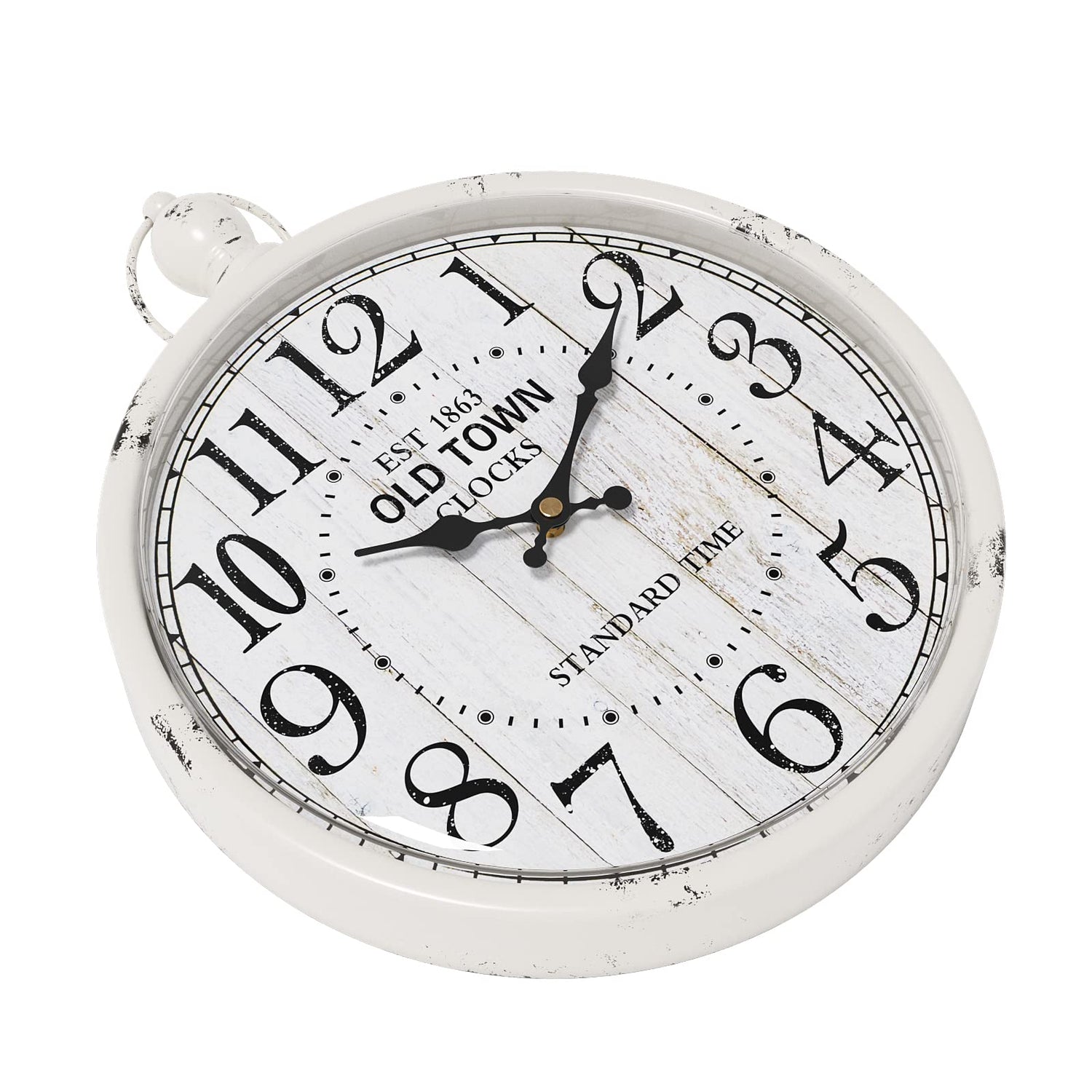 Menterry Retro Round Wall Clock. White Vintage Antique Style. Battery Operated Silent Wall Clocks for Farmhouse,Bathroom,Kitchen,Bedroom,Office, (11.8" H x 9.3" W)