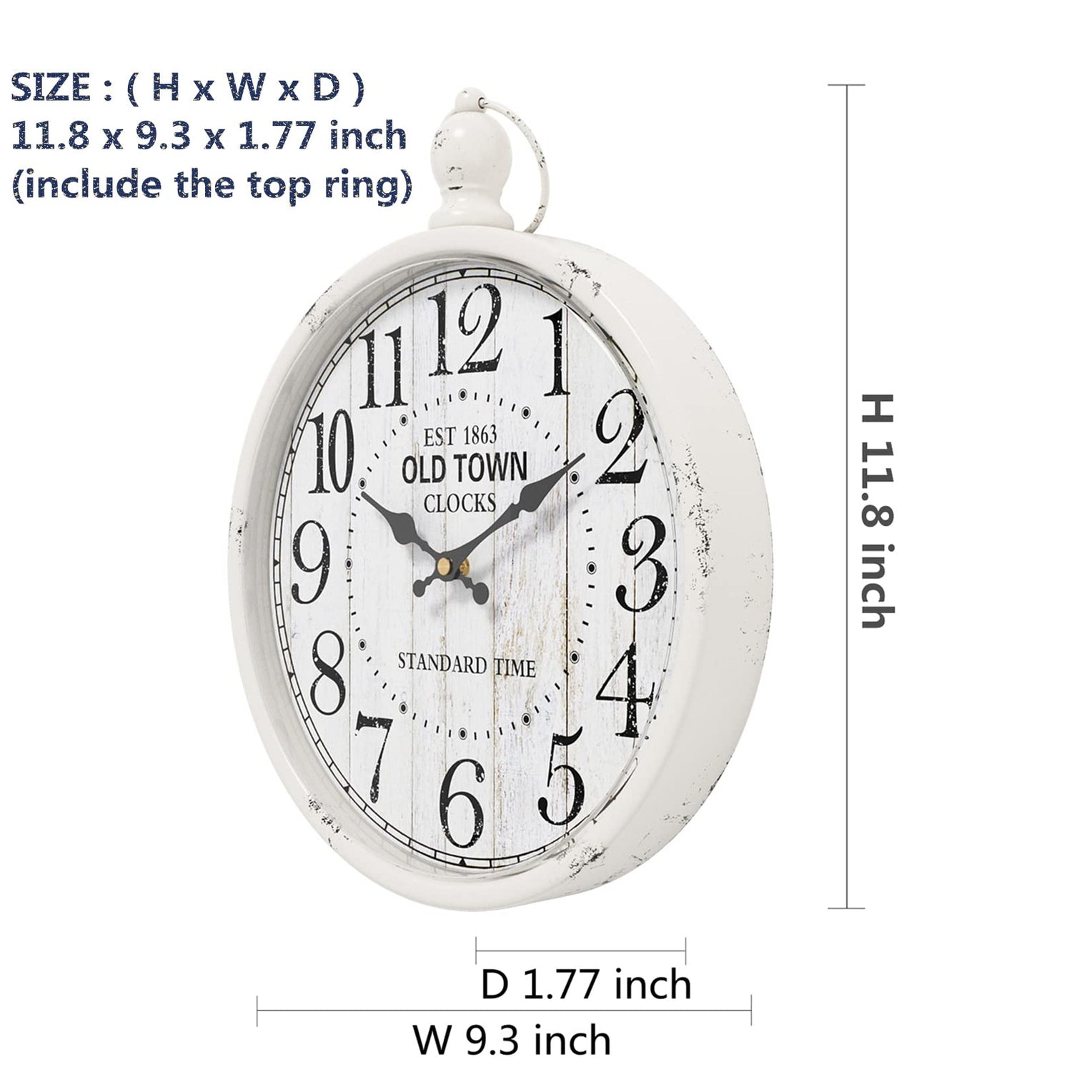 - ROUND WALL CLOCK SIZE : ( H x W x D ) 11.8 x 9.3 x 1.77 inch (include the top ring) with Retro effect, old-fashioned Antique design vintage craftsmanship style, giving a nostalgic or retro decoration feel, It is a perfect gift for family or friends.
