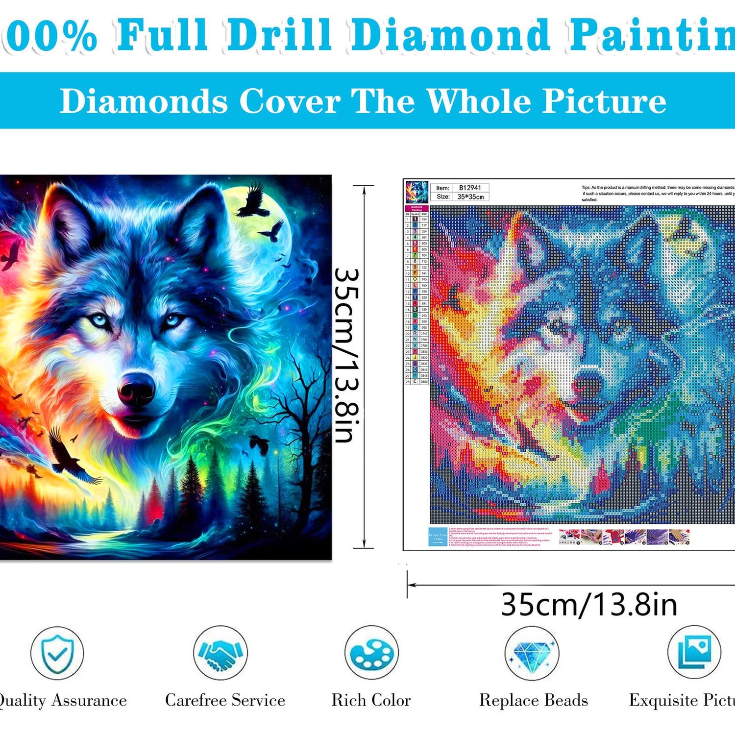 - High-Quality Materials: Wolf diamond art kits come as a canvas with a sticky background that is protected by a plastic covering. The canvas is a high-definition printed oil canvas and waterproof,strong viscosity,Non-toxic and odorless. The background is clear, the letter symbols are clear and easy to read.