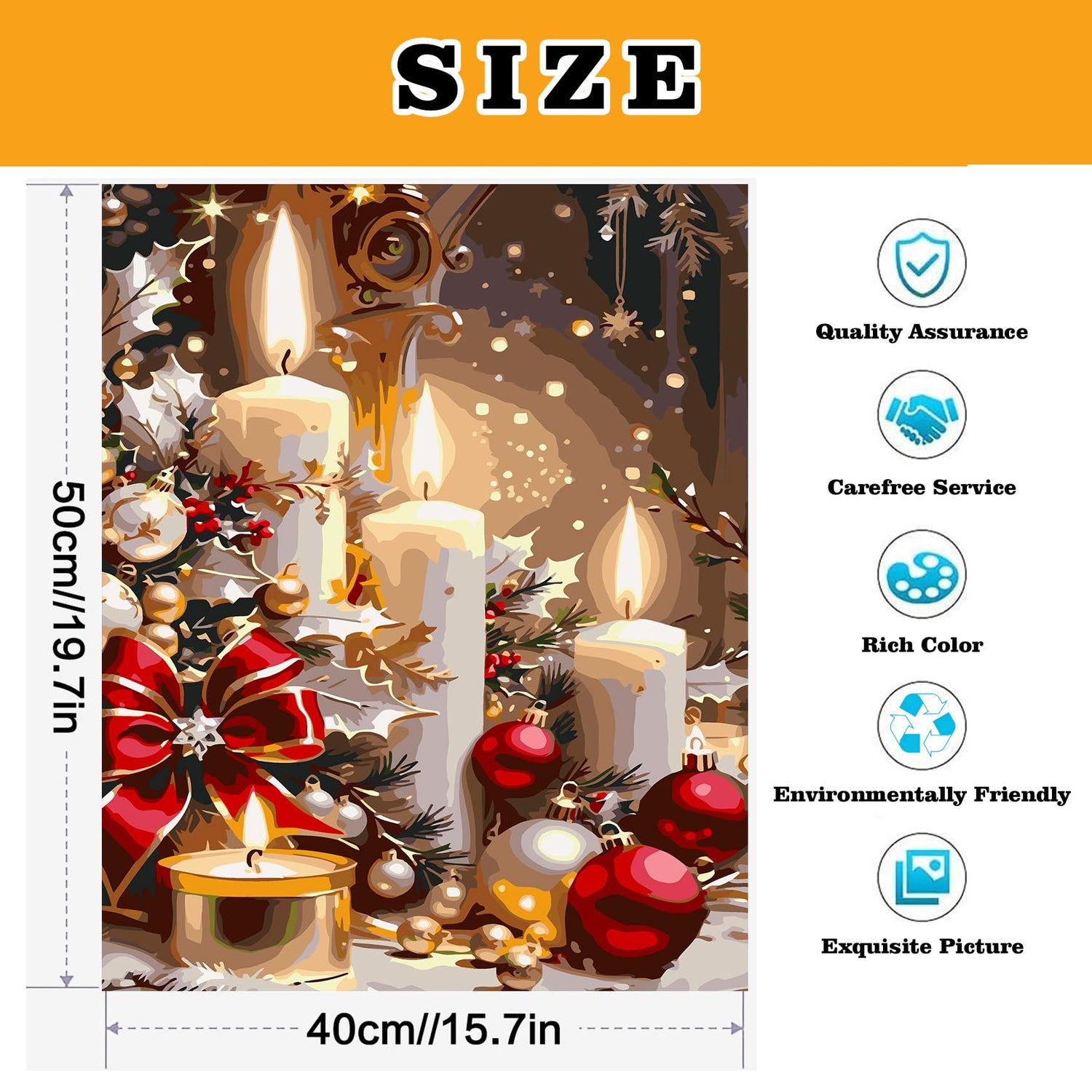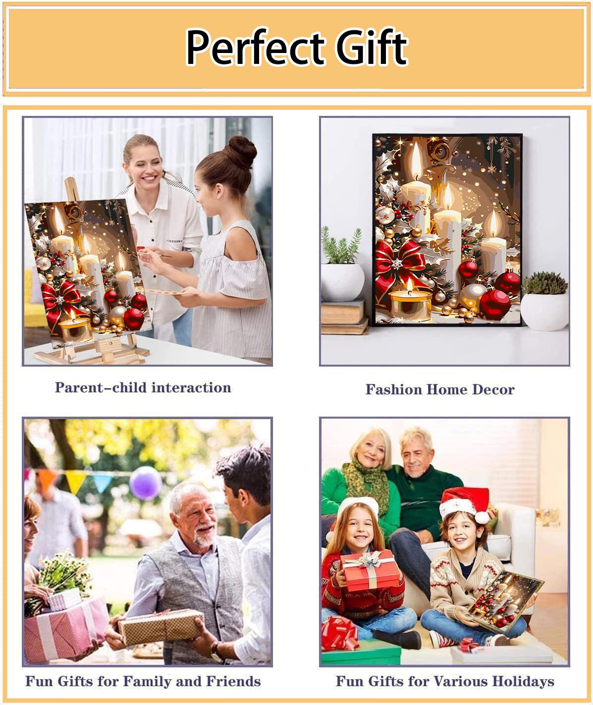 - 【Easy Paint by Numbers Kit for Adults】DIY Christmas candles paint by numbers can give full play to your creative talents and exercise your concentration and patience. You can also complete this craft art with your family or friends, which will increase your intimacy with them and make your life more interesting.