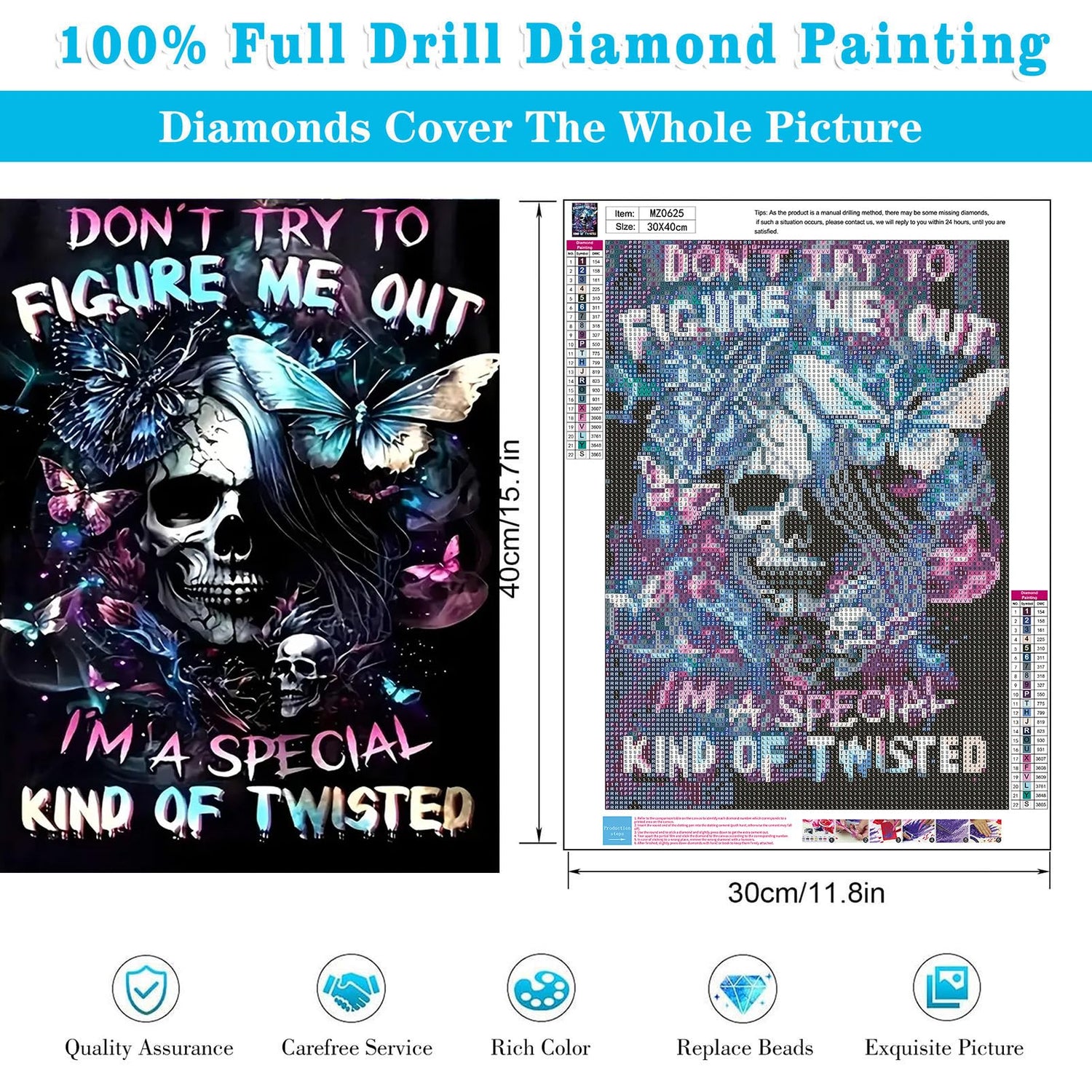 - PAINT WITH DIAMONDS: Life can get pretty stressful at times. Our butterfly skull diamond art for adults will lower stress and anxiety levels by diverting your attention from the every-day pressure of life to a peaceful and calming activity.