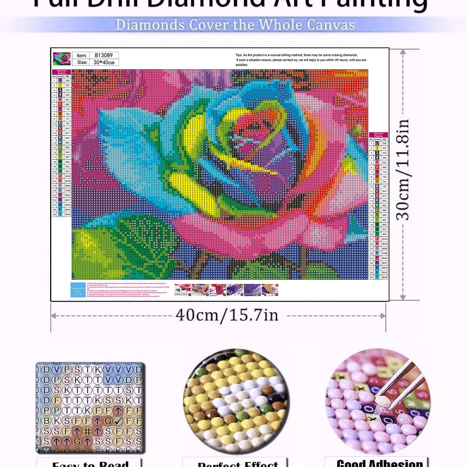 - High-Quality Materials: Rose flowers diamond art kits come as a canvas with a sticky background that is protected by a plastic covering. The canvas is a high-definition printed oil canvas and waterproof,strong viscosity,Non-toxic and odorless. The background is clear, the letter symbols are clear and easy to read.