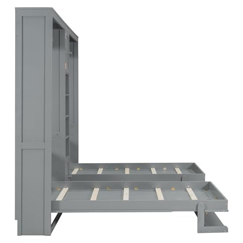 Merax 110W Dual Twin Wall Murphy Beds with Cabinets and Shelves,Sleeping Arrangement for Multipurpose Area, Bedroom, Guest Room or Living Room,Gray