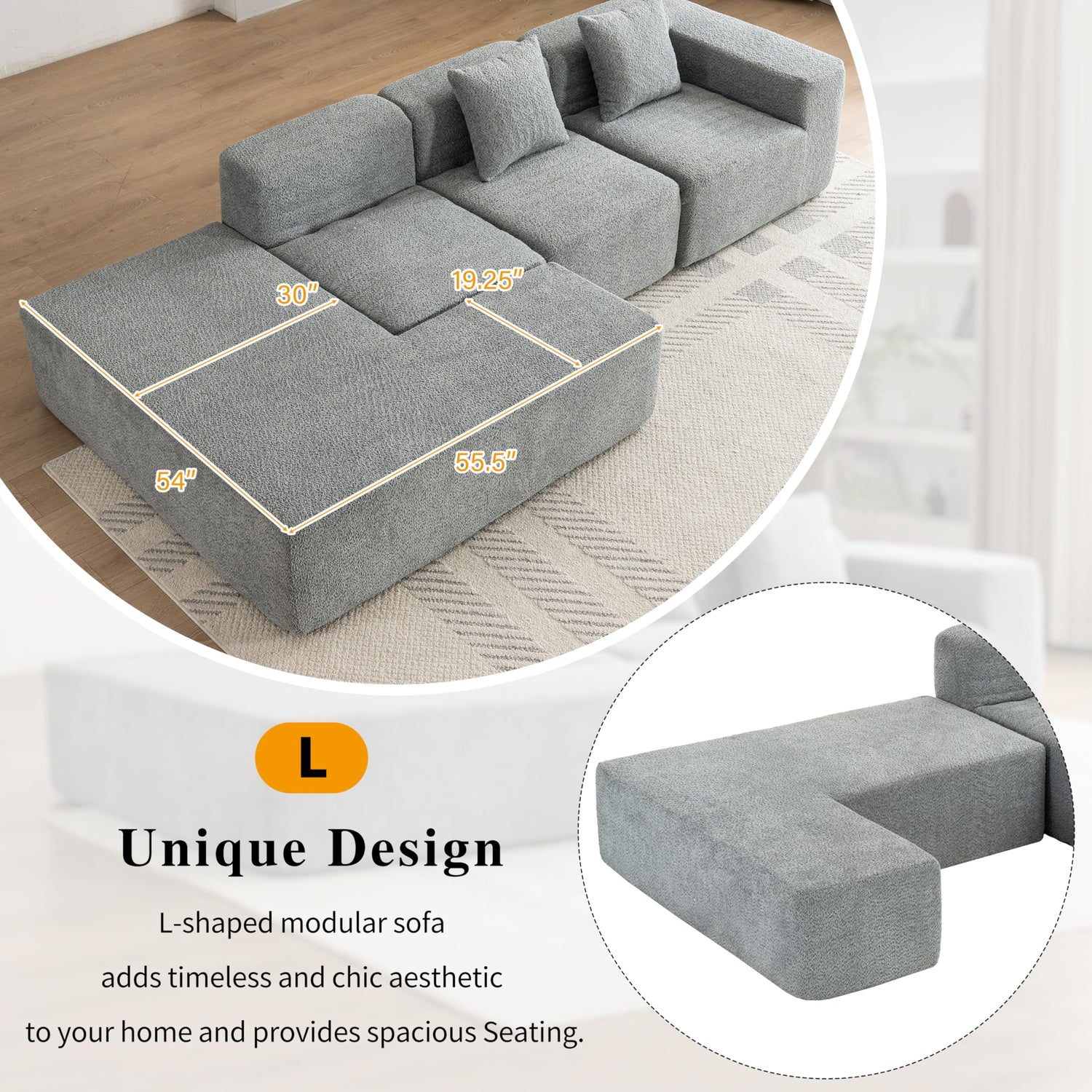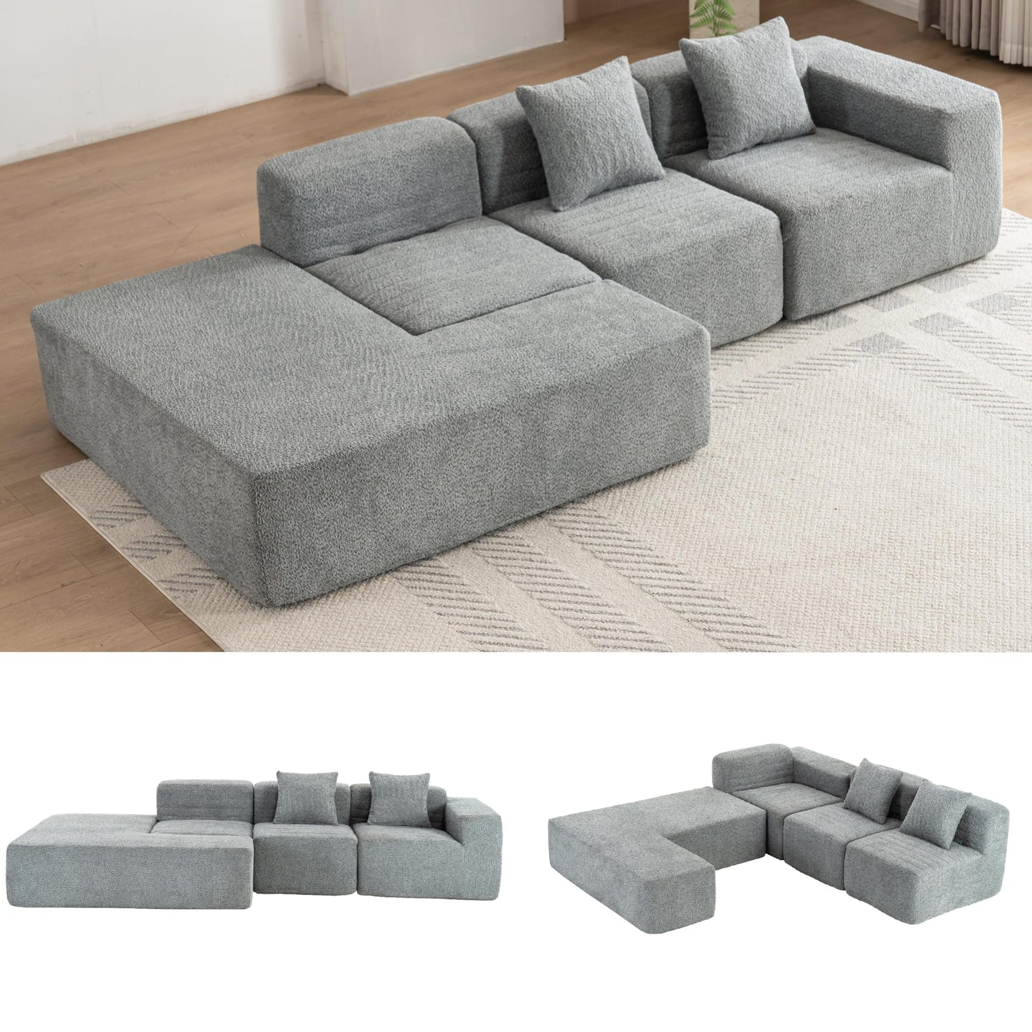 - Modular Sectional Sofa: Discover the adaptability of our minimalist modular sofa, designed for flexible configurations to fit your lifestyle. This L-shaped sectional set is composed of four modular units, maximizing space efficiency when placed against a wall. It can change shape according to the needs of the space, so as to become U-shaped sofa, L-shaped sofa, 4-seat sofa or sofa bed