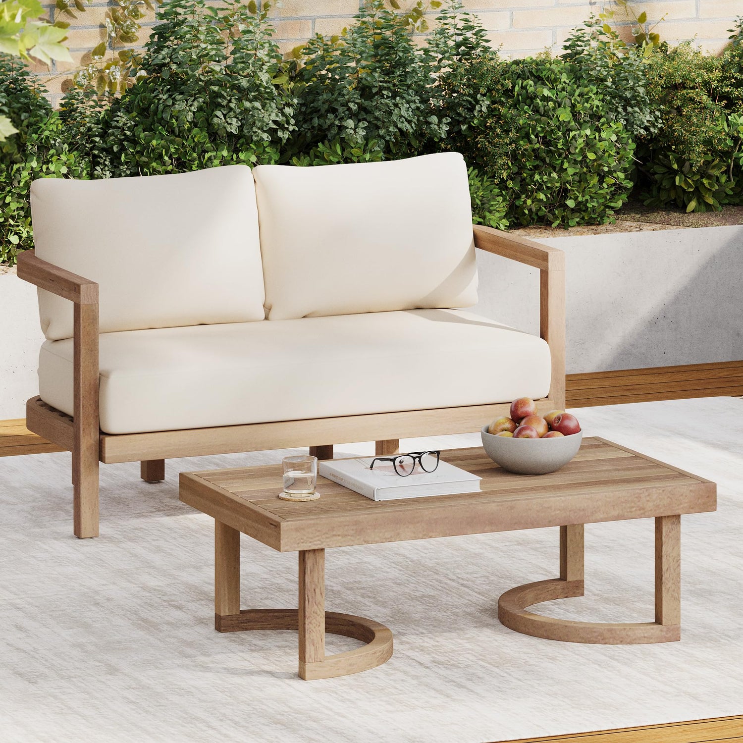 Merax 2-Piece Outdoor Acacia Wood Loveseat Sofa Couch with Coffee Table,Patio Furniture Conversation Set for Backyard