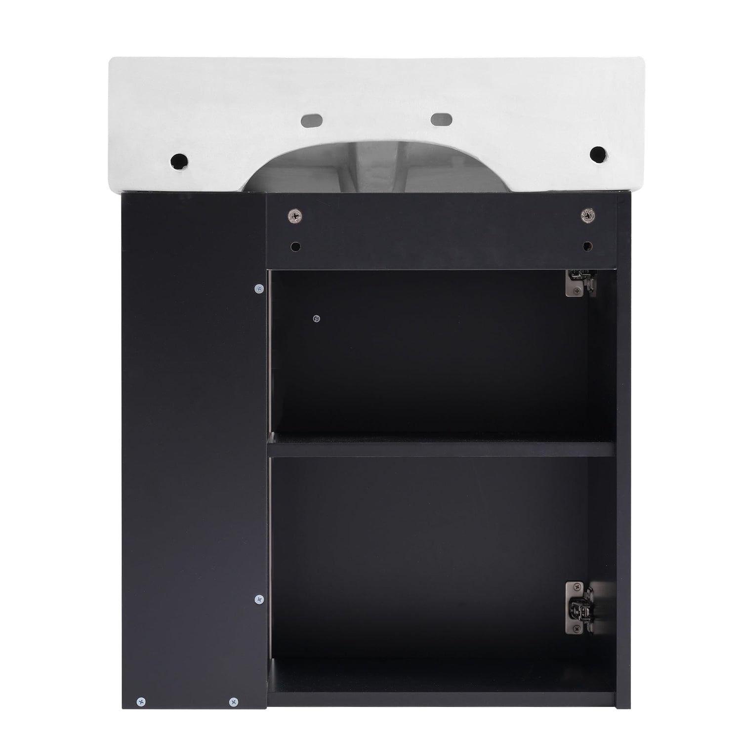 Merax 20" Bathroom Vanities with Sink Top, Wall Mounted Floating Sink Cabinet, Bathroom Cabinet with Doors & Side Storage, Soft-Close System, Black