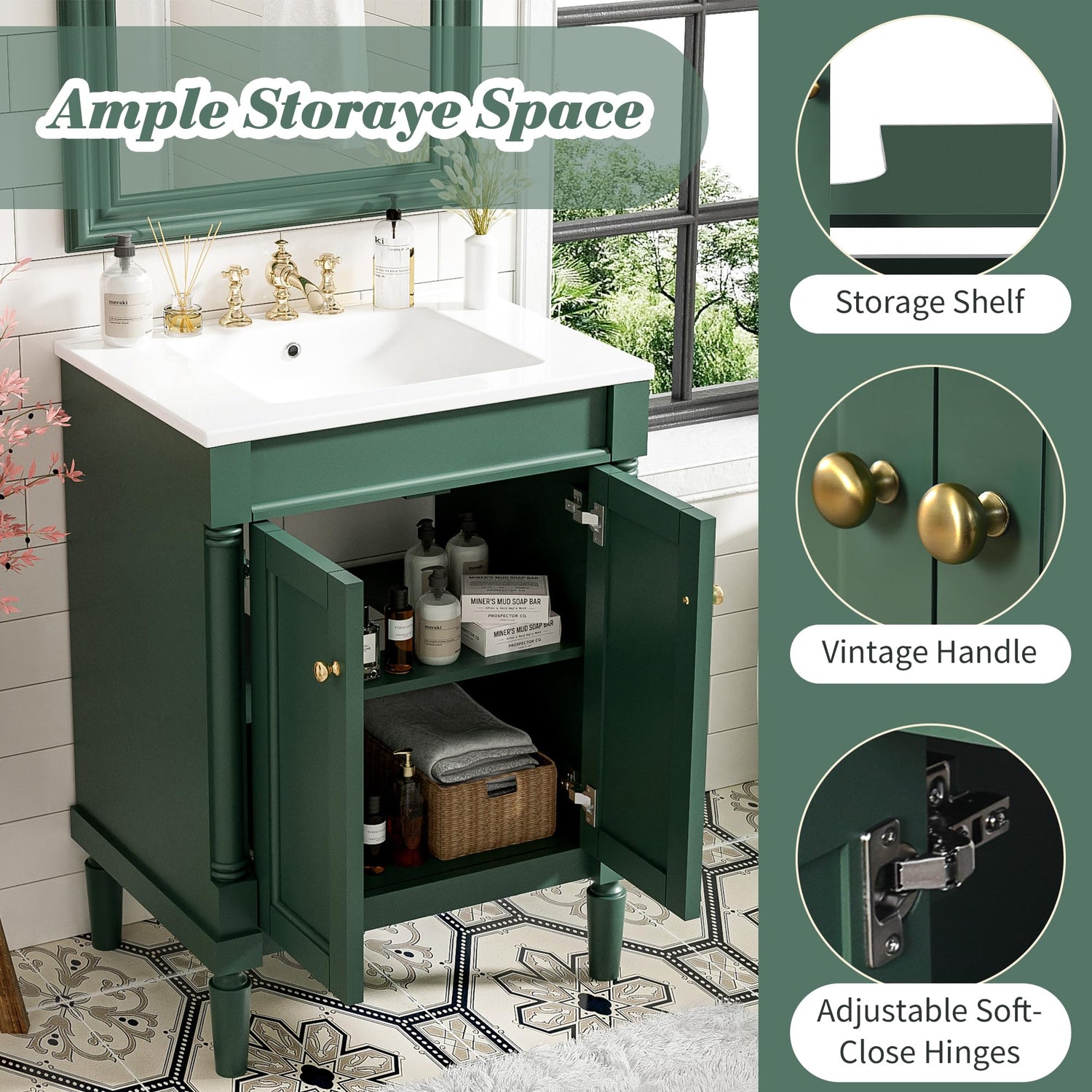 Merax 24” Bathroom Vanity with Sink, Powder Room Small Bathroom Vanity with 2-Door Cabinet, Undermount Sink, Solid Wood Frame Bathroom Storage Cabinet (Vogue Green)