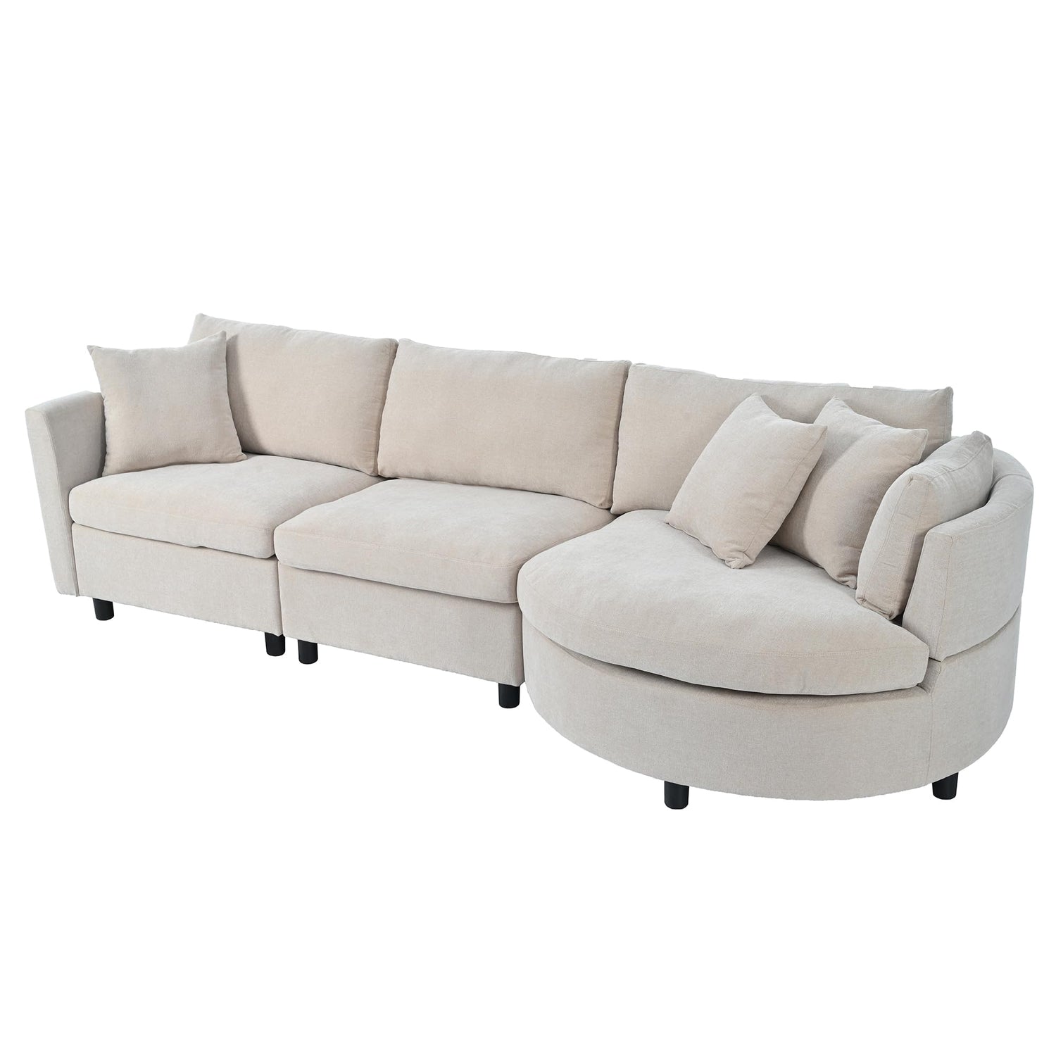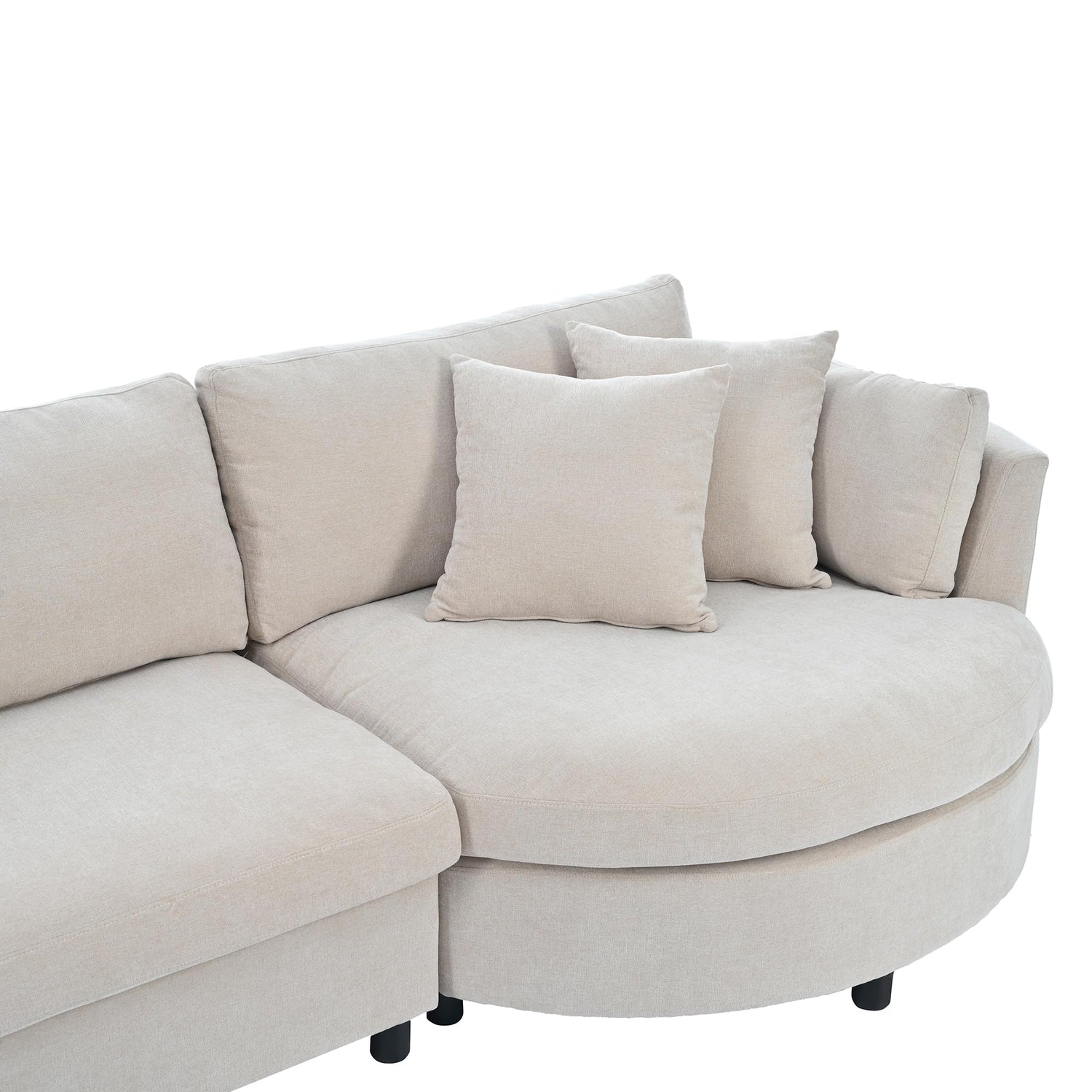 Merax 3 Seater Upholstered Couch Living Room Sofa with Three Pillows and Curved Seat for Apartment, Beige