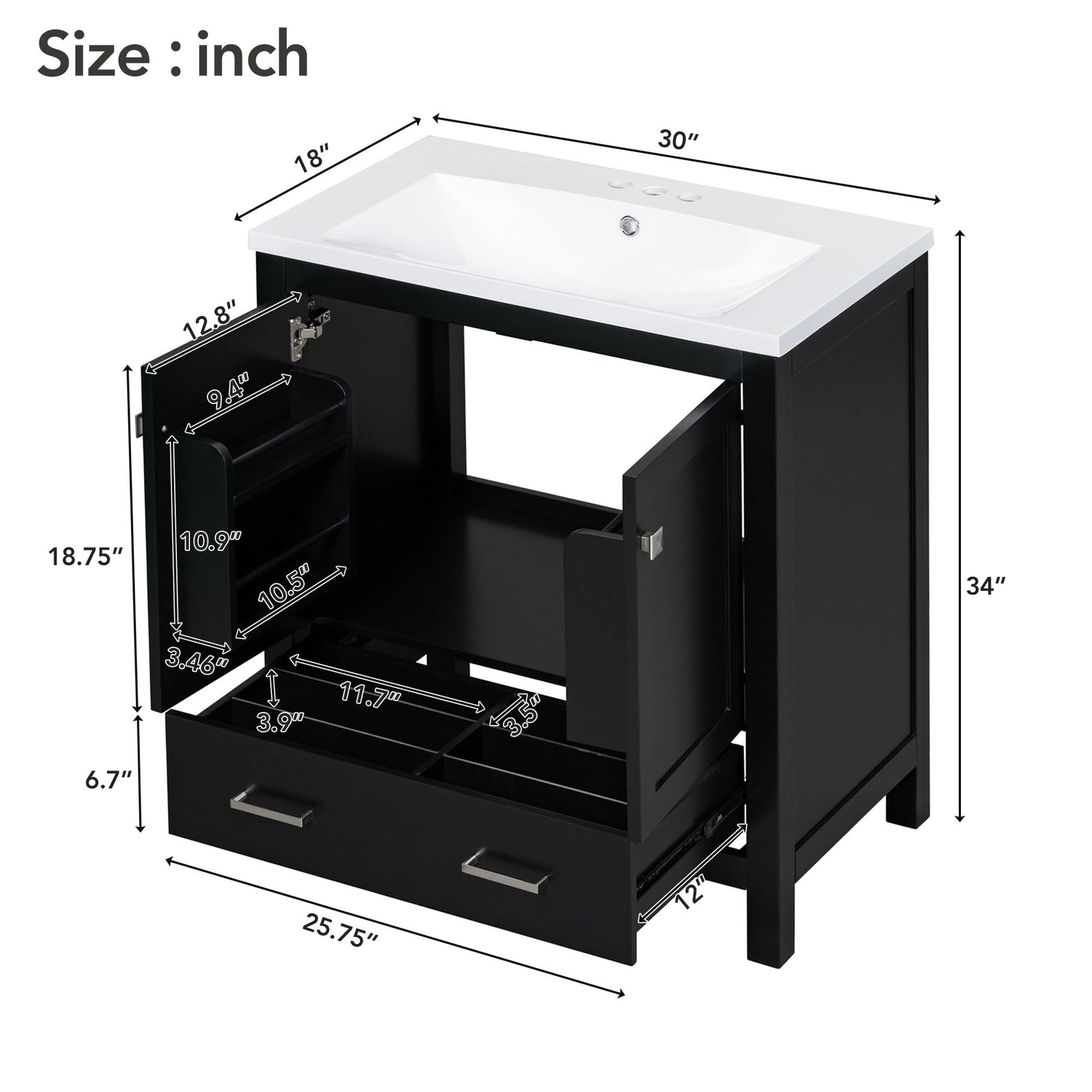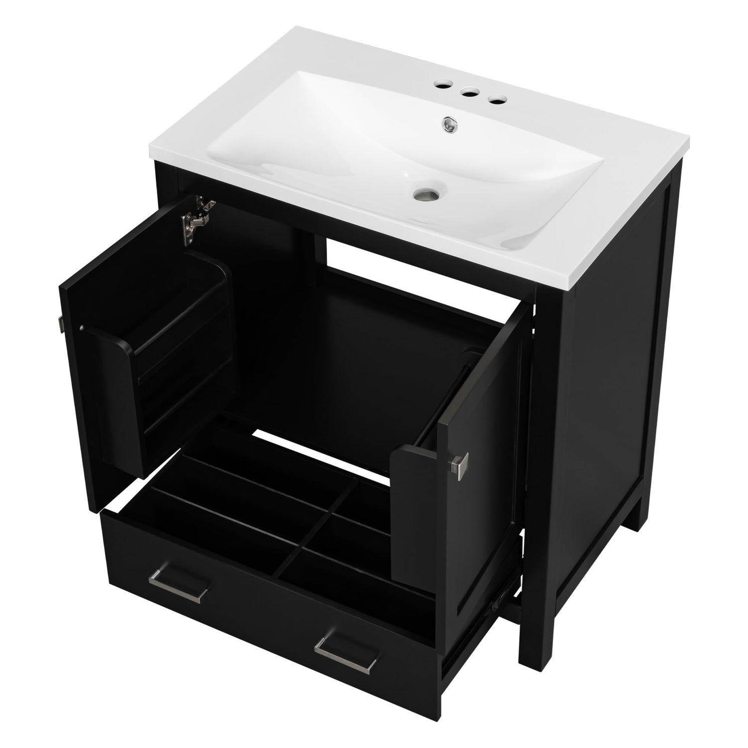 Merax 30" Bathroom Vanity with Single Sink, Combo Cabinet Undermount Sink, Bathroom Storage Cabinet with 2 Doors and a Drawer, Soft Closing, Multifunctional Storage, Solid Wood Frame, Black