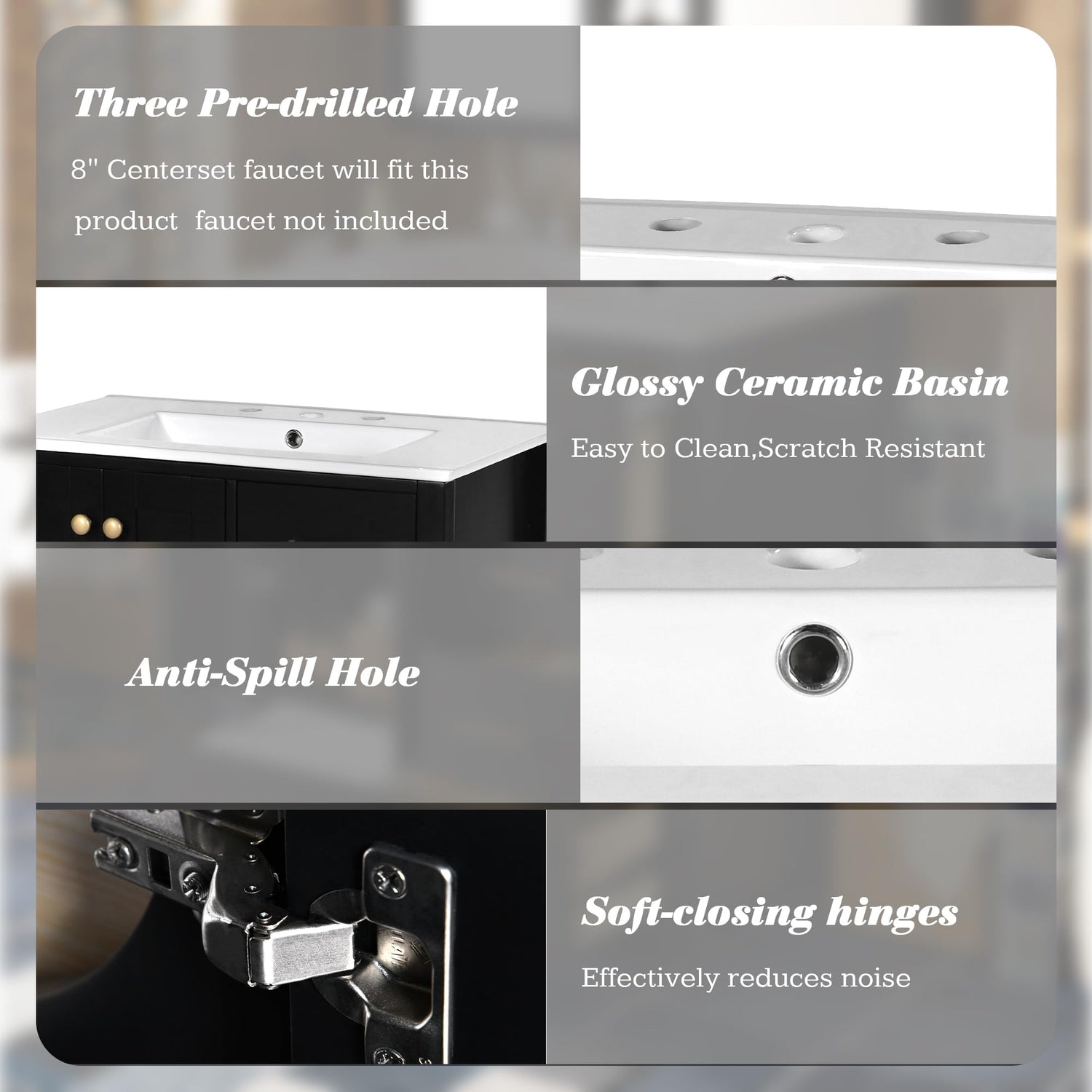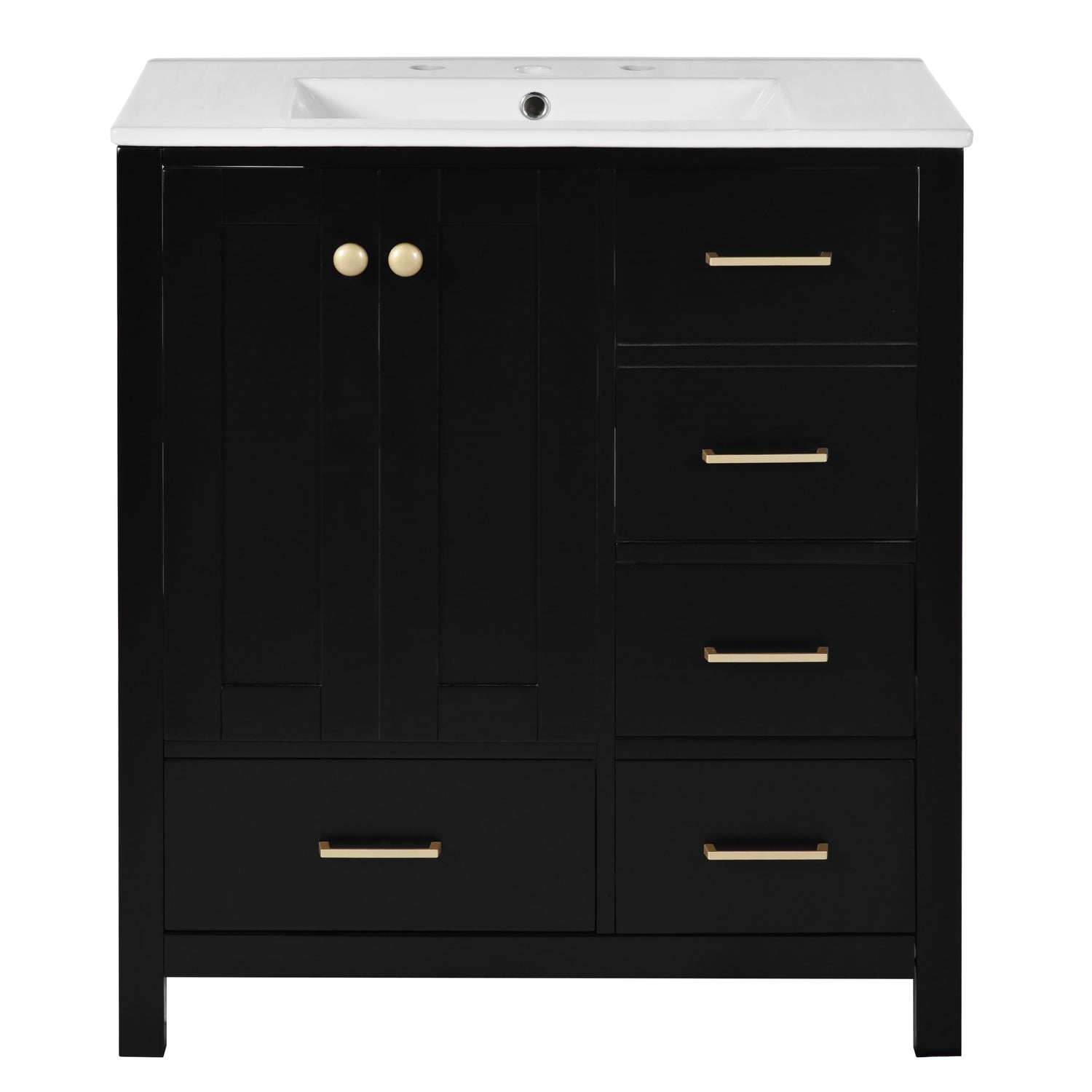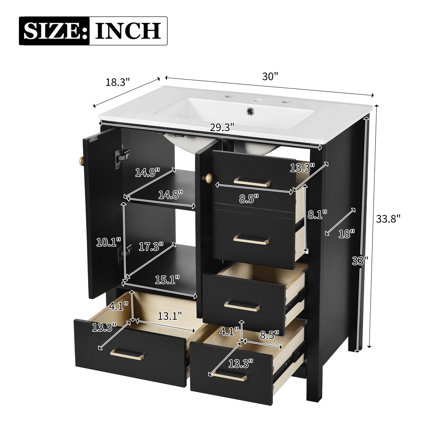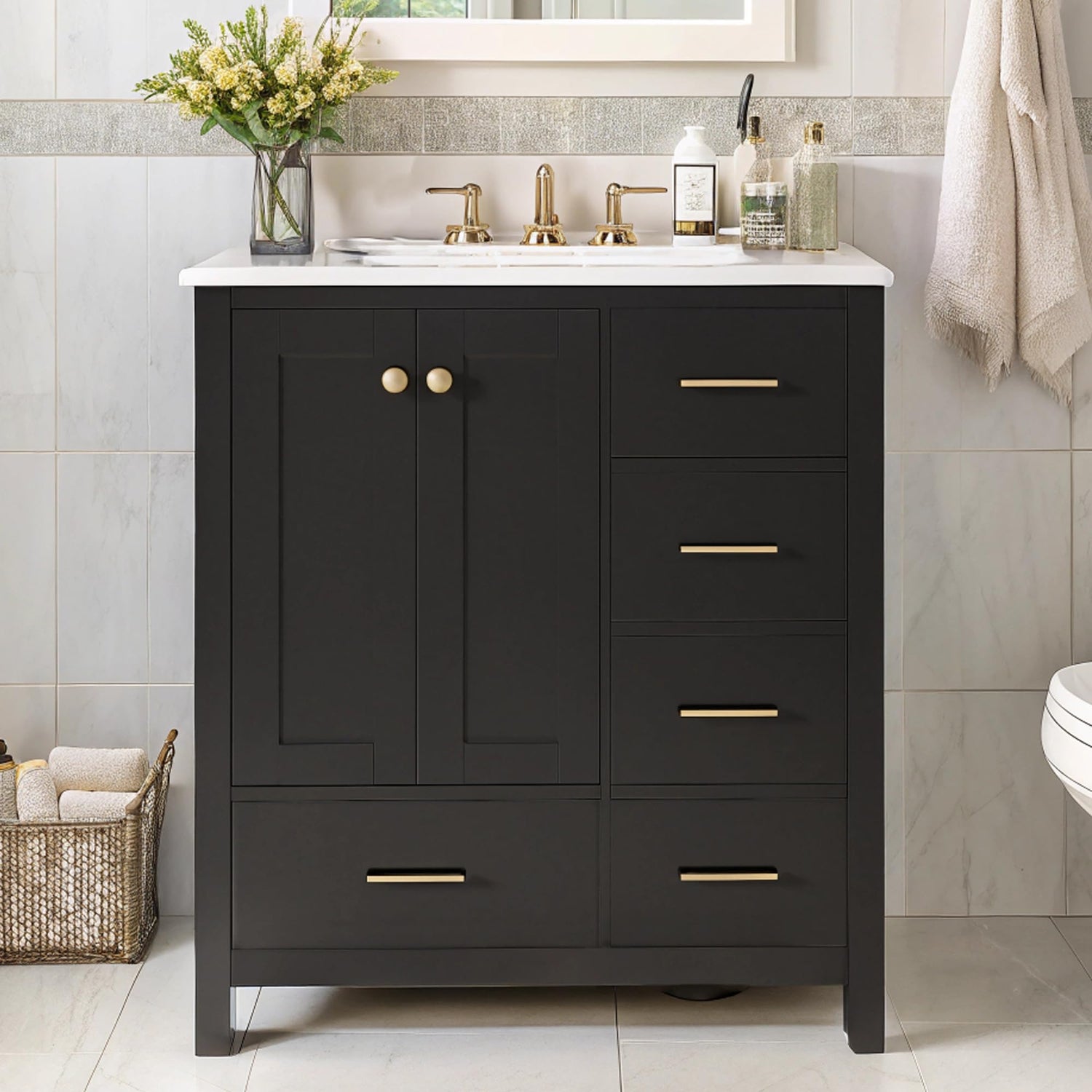 Merax 30" Bathroom Vanity with Sink, Painted Modern Bathroom Vanity Cabinet with 2 Doors and 4 Drawers, Solid Wood Frame, Ceramic Sink Top