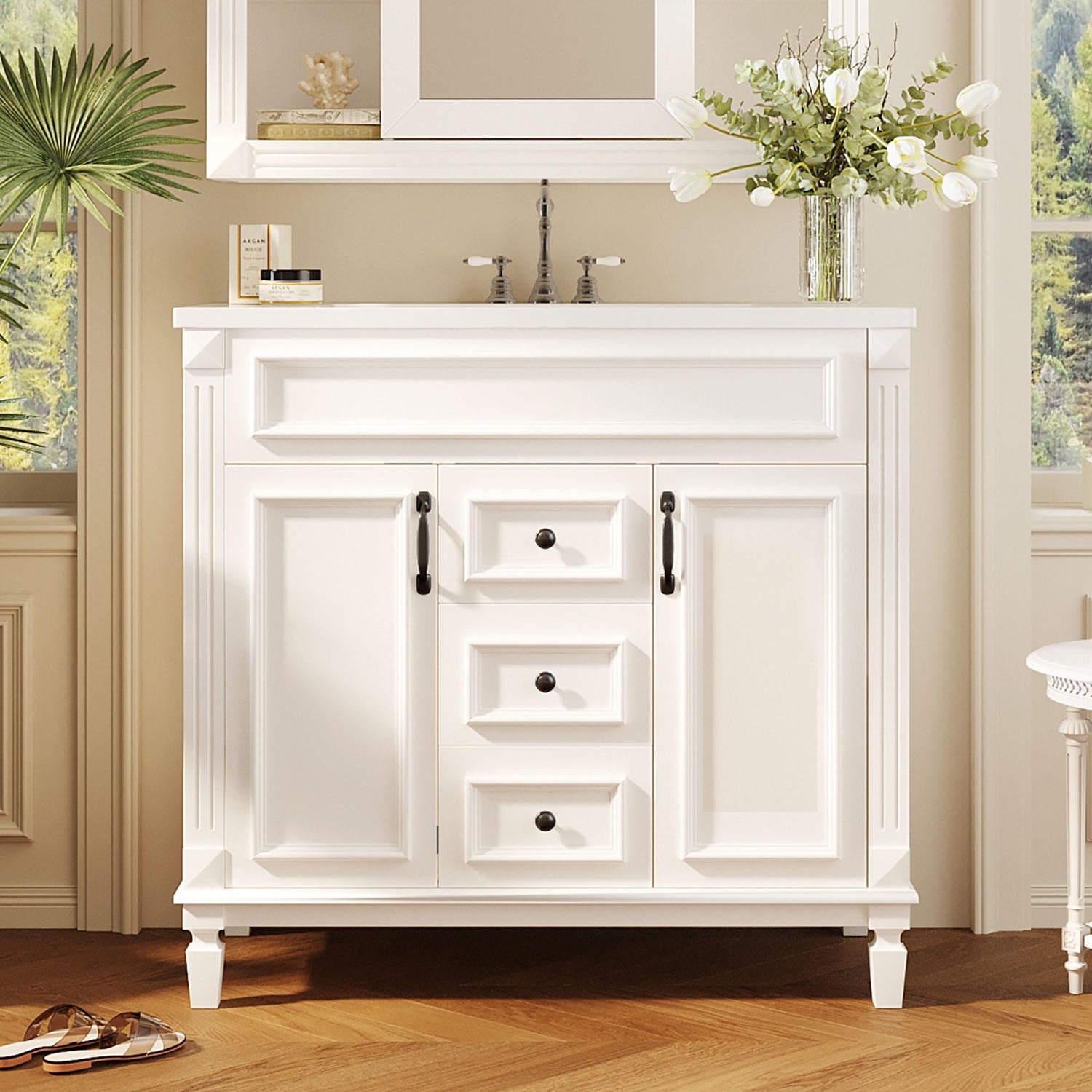 Merax 36" Bathroom Vanities with Single Sink, Modern Undermount Bathroom Sink Cabinet with 3 Closing Doors & 2 Full Extension Dovetail Drawers