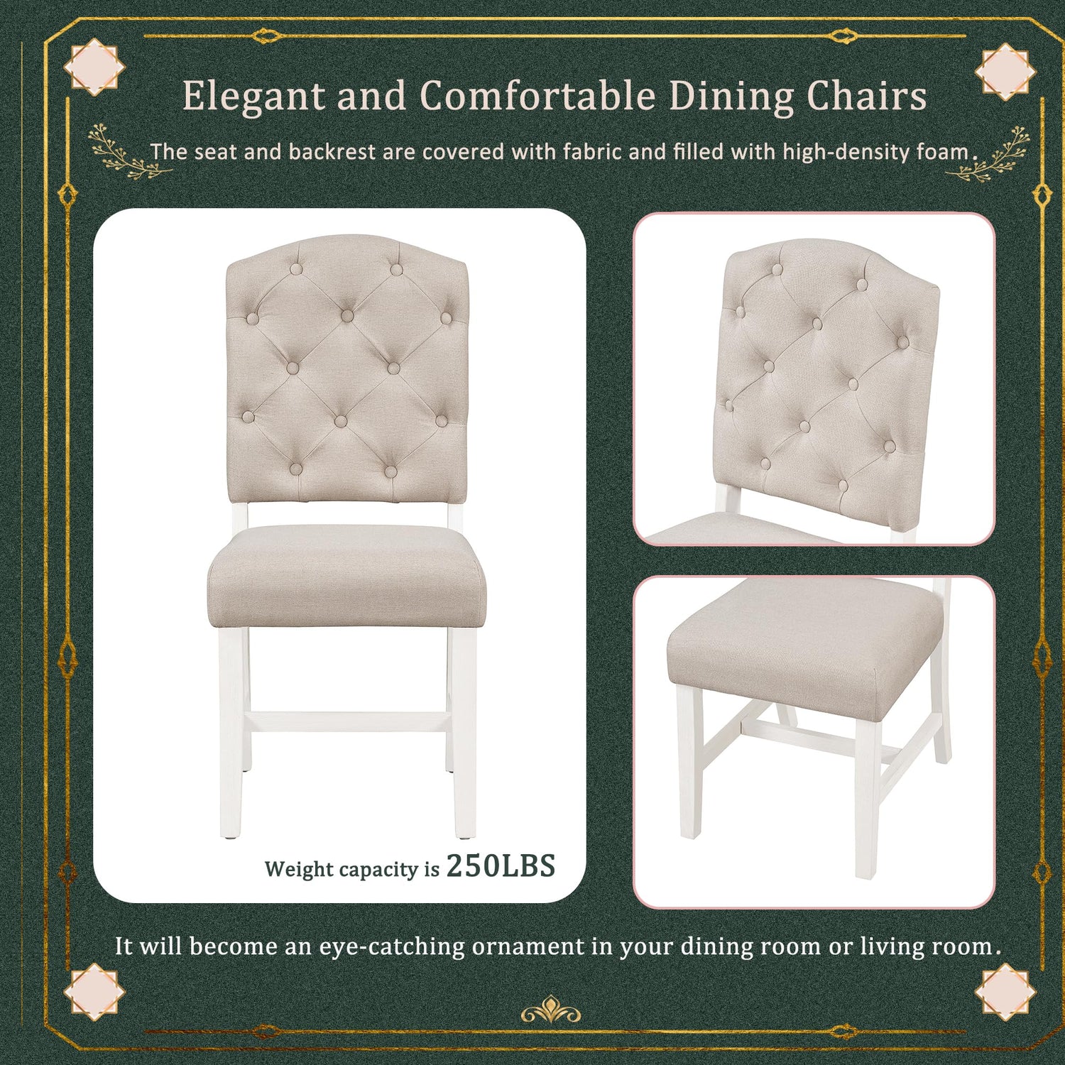 - [Elegant and Comfortable Dining Chairs] - This is a chic dining chair, the seat and backrest are covered with fabric and filled with high-density foam. Its beautiful lines, back flared legs and delicate button tufting details are elegant and thoughtful in design. No matter where it is placed, it will become an eye-catching ornament in your dining room or living room. Rubber wood chair legs are sturdy and durable, ensuring the service life and fixed number of years.