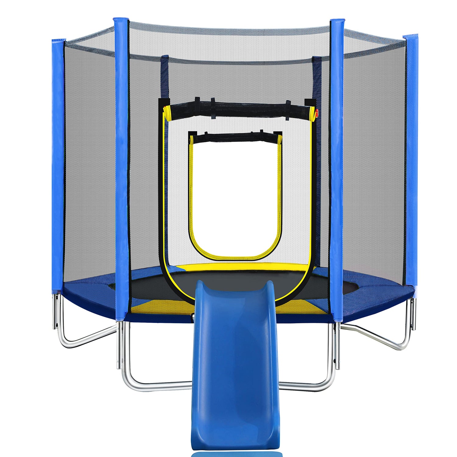 Merax 7FT Trampoline with Slide and Ladder for Kids, Easy Assembly Round Outdoor Recreational Trampoline with Safety Enclosure Net, Blue