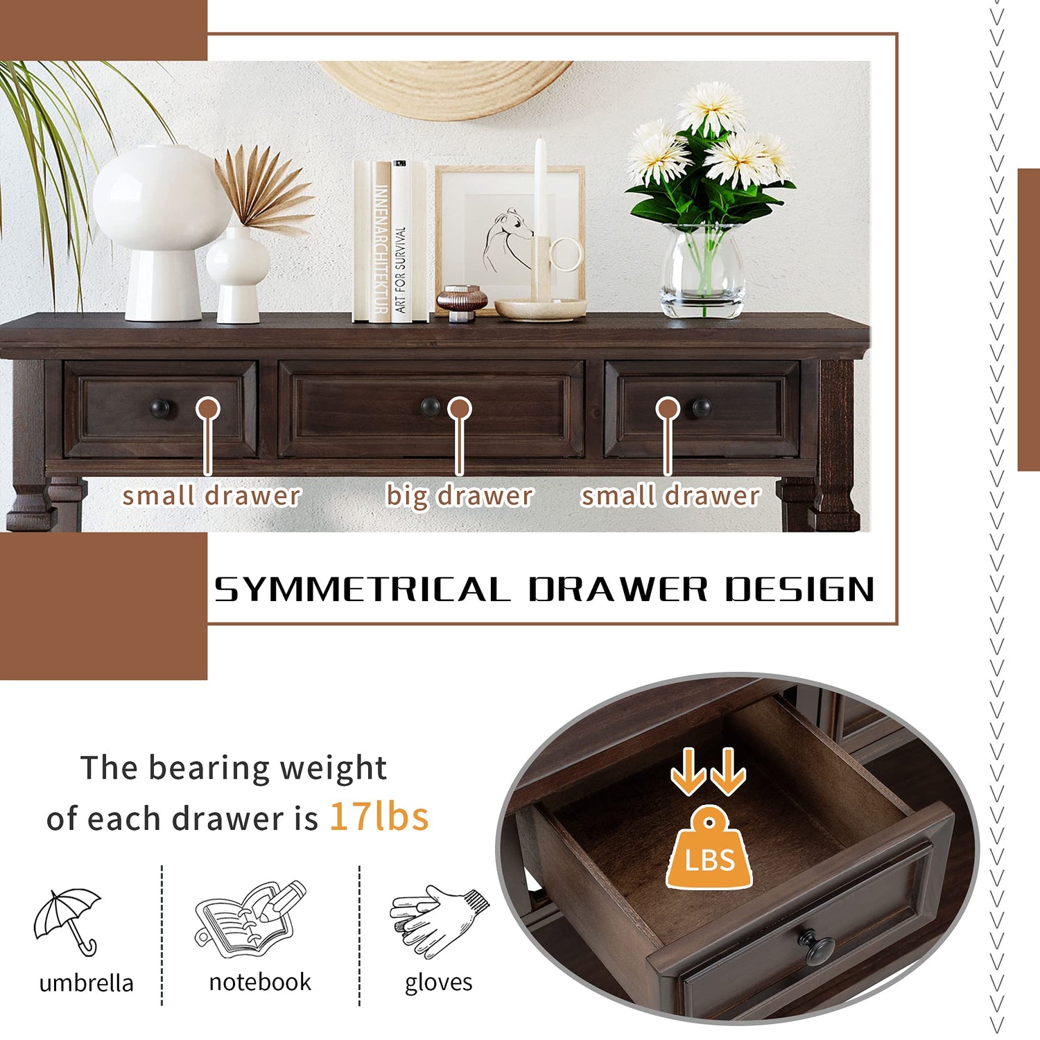 - 【Plenty Storage】This entryway table comes with 3 pull out drawers and a long bottom shlef for storage, offering enough storage space for your items like decorations and lamps, books, keys or other daily accessories.