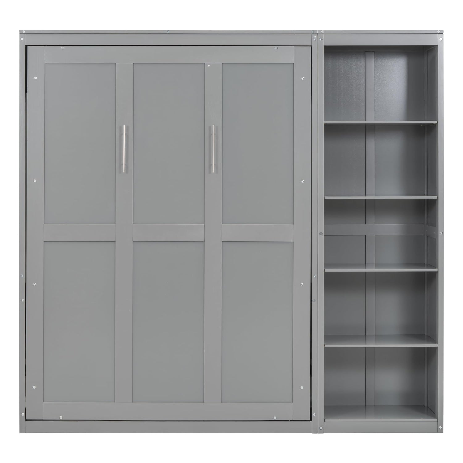 Merax Full Size Murphy Bed with Adujstable Storage Shelves, Fold into The Wall, Multifunctional Foldable Platform Wall Bed Frame, Space-Saving Design Bed for Guest-Room, Home, Office, Gray