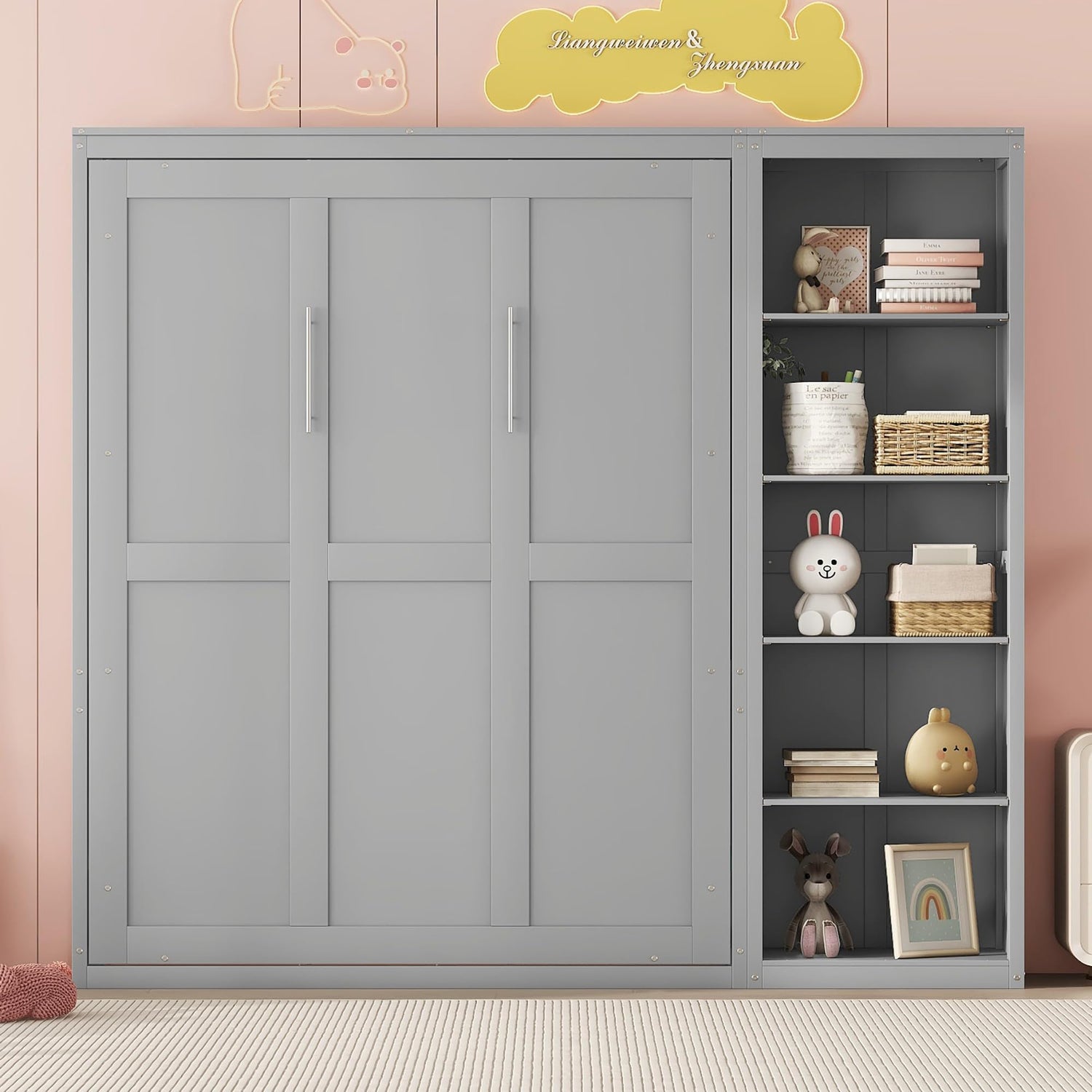 - ❤Wall Bed with Adjustable Storage Shelves: With a five-layer cabinet that can be equipped on either side of the bed, this Murphy bed provide more space for you to store home items. There are multiple holes on the side panel of the side storage room, and you can move the shelf up and down flexibly according to your needs and preferences, which can meet the placement of objects of different heights.