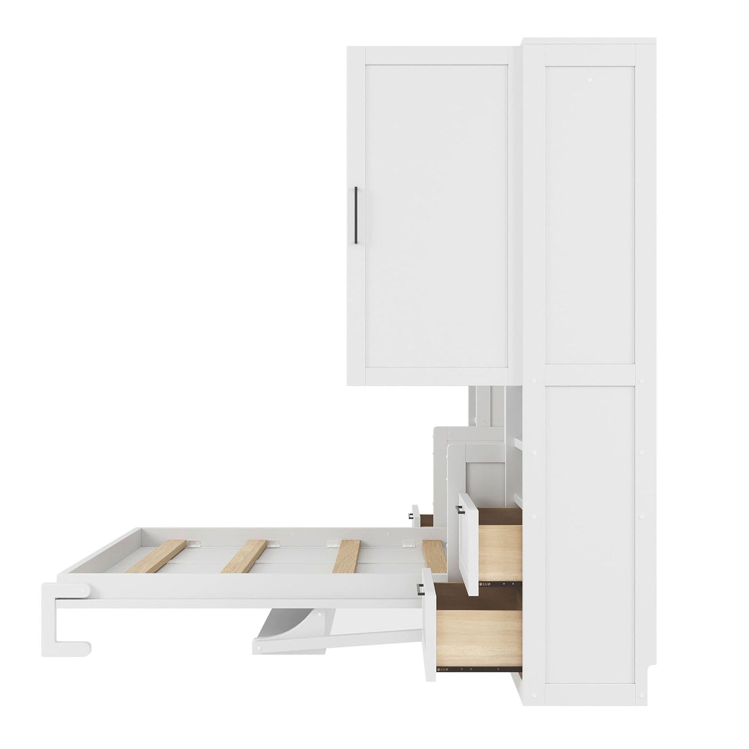 - [Multiple Storage] Featuring built-in shelves, storage drawers, and a large wardrobe, this Murphy bed offers multiple storage solutions on either side of the bed. Keep your clothes, books, and essentials organized and easily accessible, enhancing the functionality of your guest room or office.